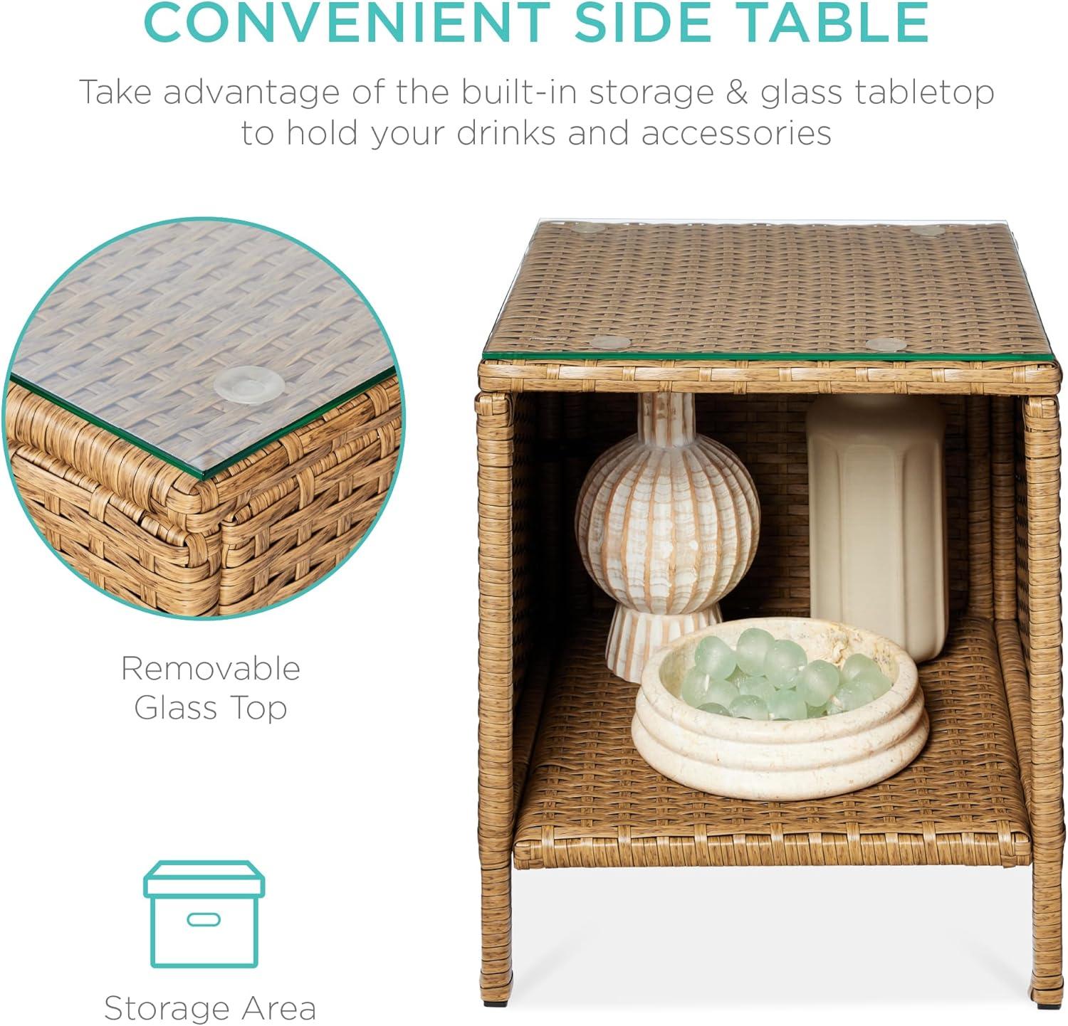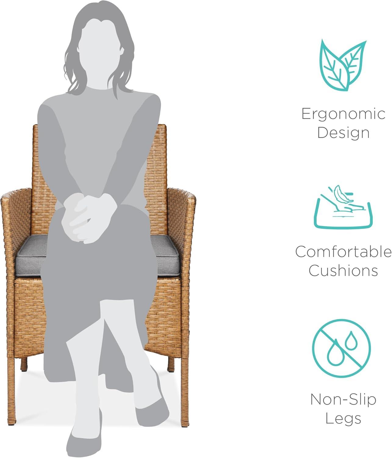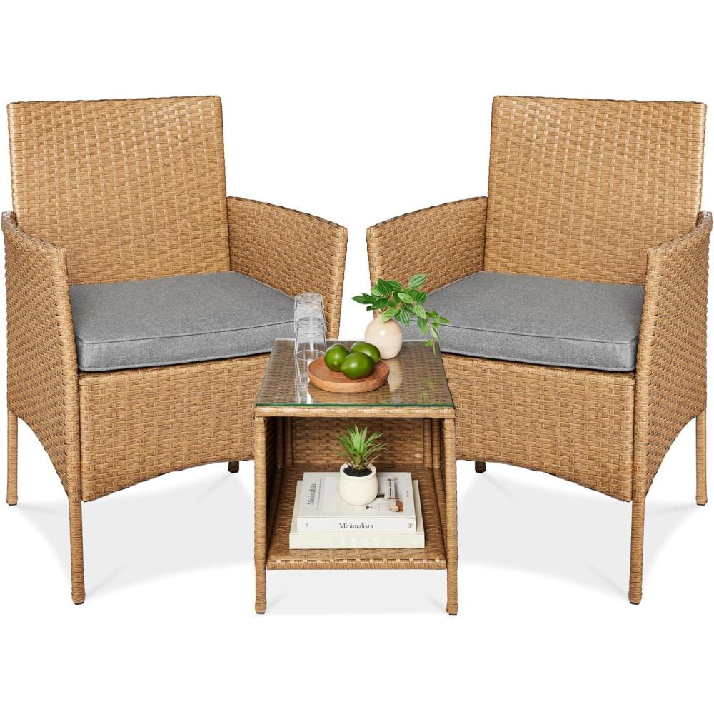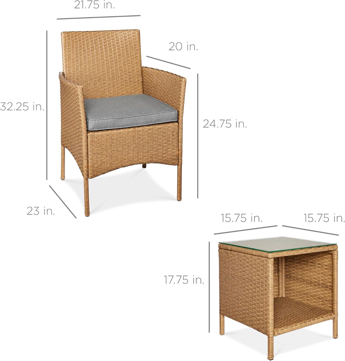 Best Choice Products 3-Piece Outdoor Wicker Conversation Bistro Set, Space Saving Patio Furniture for Garden w/Side Table – Gray/Navy(Natural/Gray)