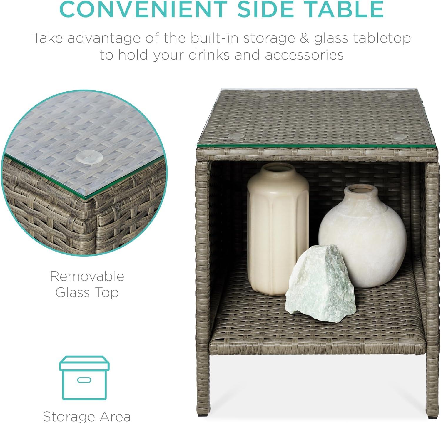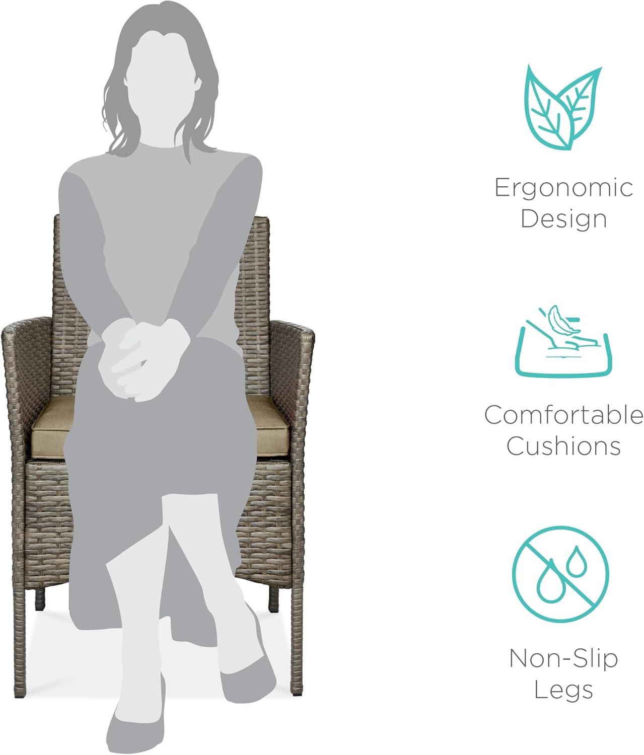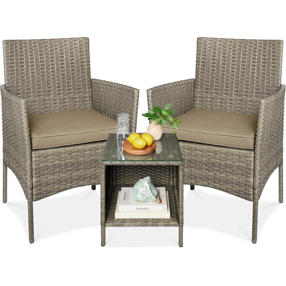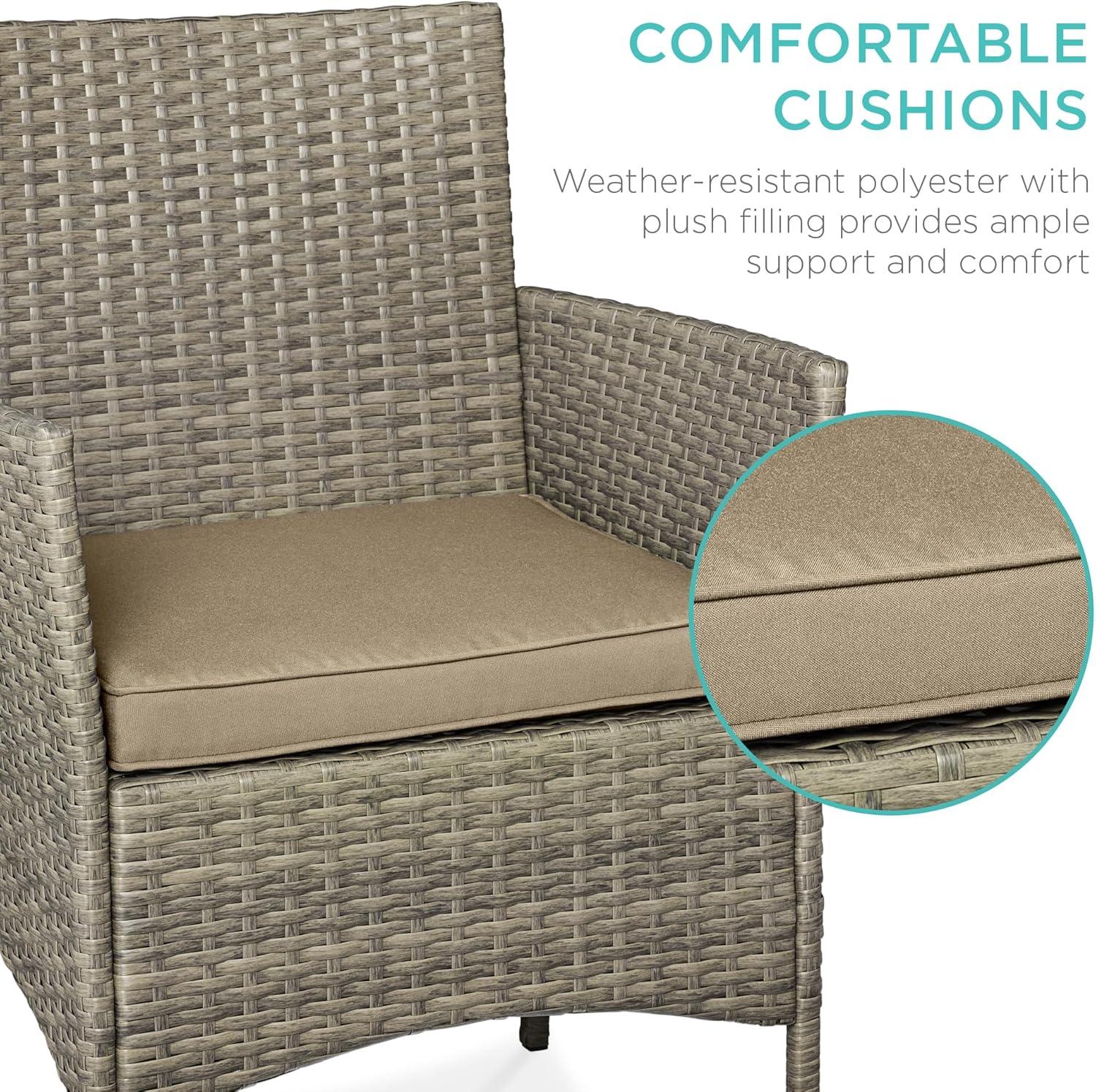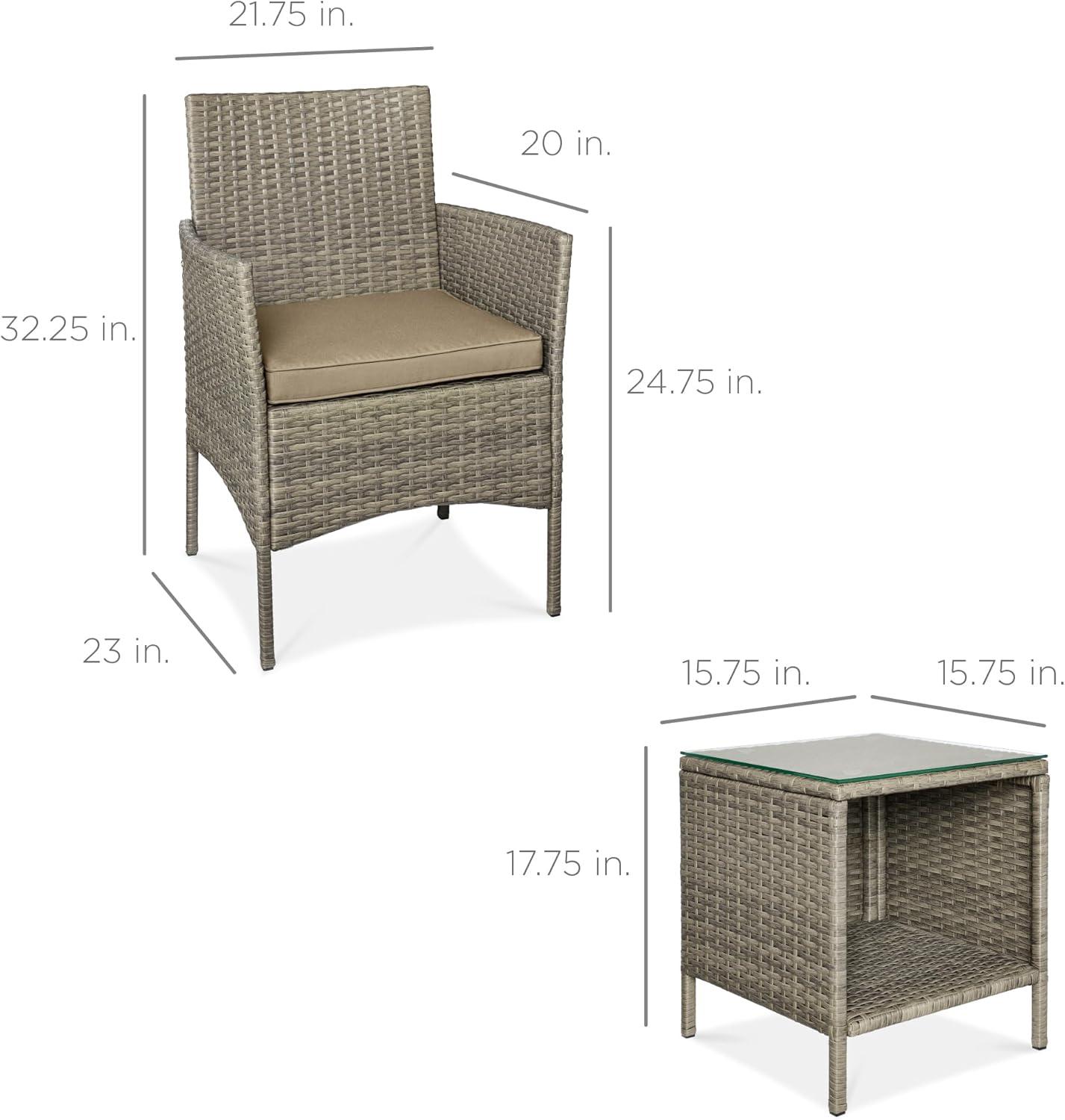 Best Choice Products 3-Piece Outdoor Wicker Conversation Bistro Set, Space Saving Patio Furniture for Garden w/Side Table – Gray/Navy(Taupe/Desert)