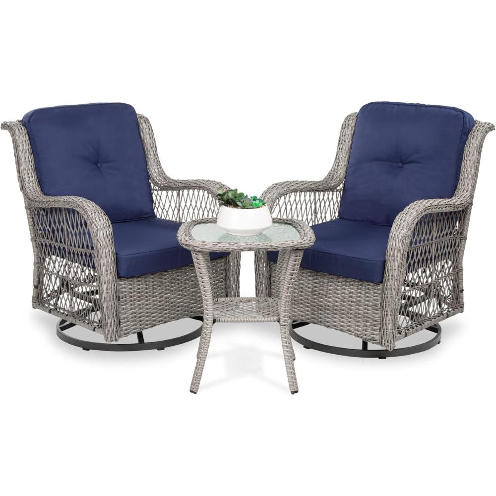 imageBest Choice Products 3Piece Outdoor Wicker Patio Bistro Set w 2 360Degree Swivel Rocking Chairs and Tempered Glass Top Side Table  NavyRust
