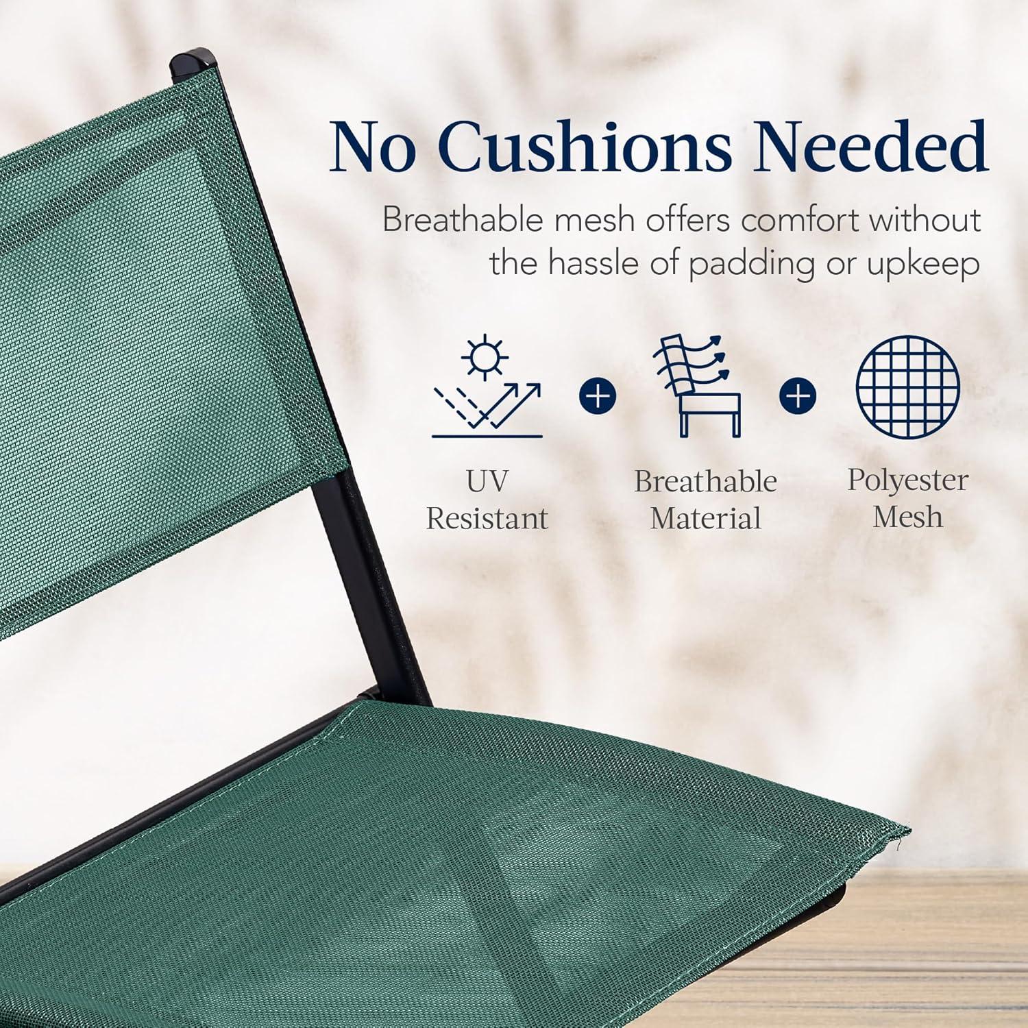 HIGH-QUALITY FABRIC: Breathable polyester mesh fabric is made to last, with UV resistance to prevent fading in the sun and 265-pound capacity to keep the chairs sturdy as you lounge; TABLE DIMENSIONS: 23.75″(Dia) x 28.25″(H); Chair Capacity: 265 lbs. (each)