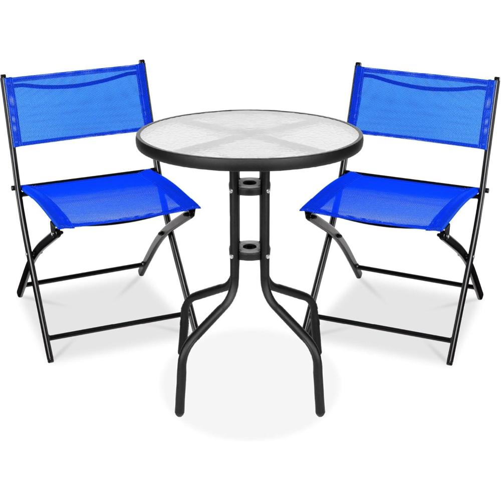 imageBest Choice Products 3Piece Patio Bistro Dining Furniture Set wGlass Tabletop 2 Folding Chairs Steel Frame Polyester Fabric  GrayResort Blue