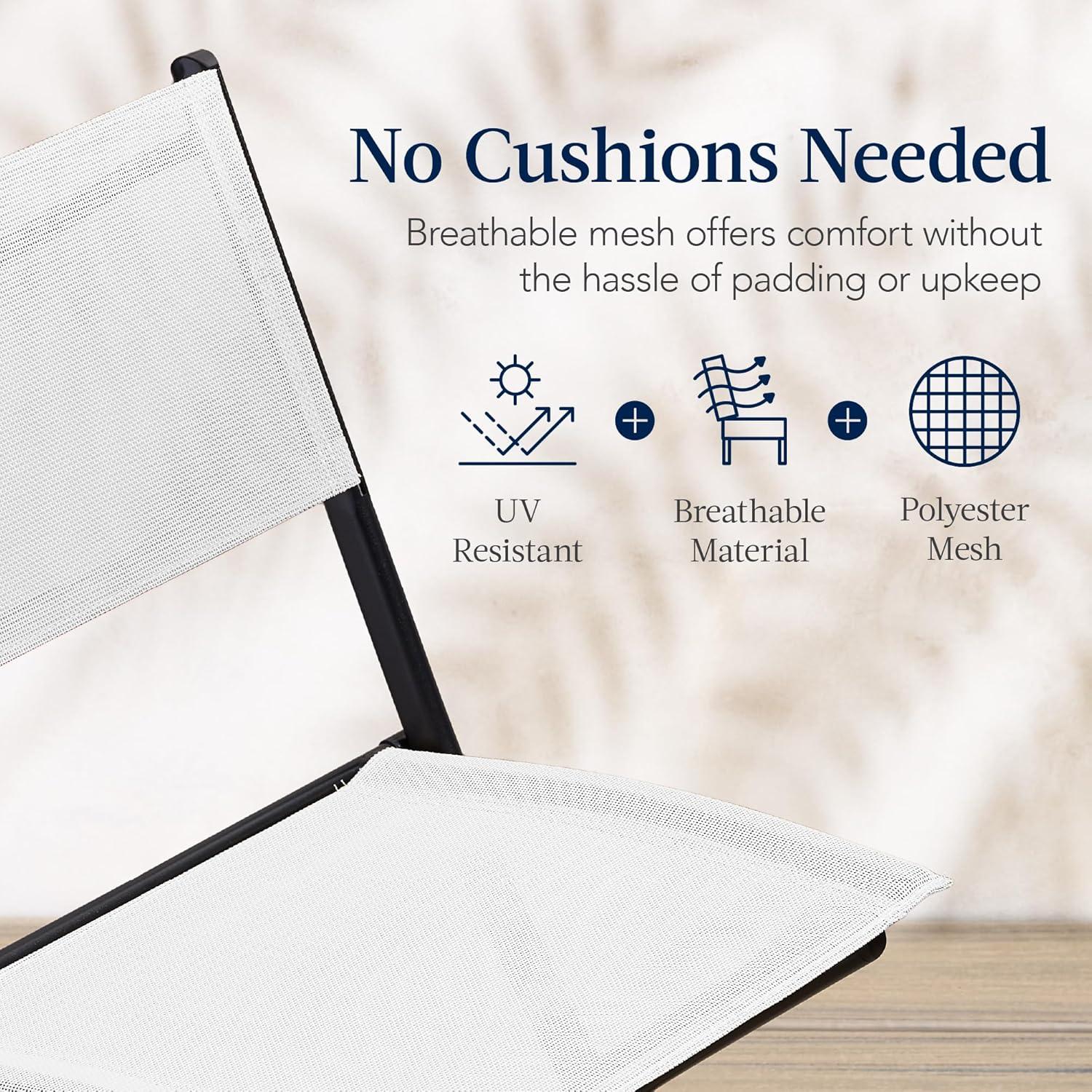 HIGH-QUALITY FABRIC: Breathable polyester mesh fabric is made to last, with UV resistance to prevent fading in the sun and 265-pound capacity to keep the chairs sturdy as you lounge; TABLE DIMENSIONS: 23.75″(Dia) x 28.25″(H); Chair Capacity: 265 lbs. (each)