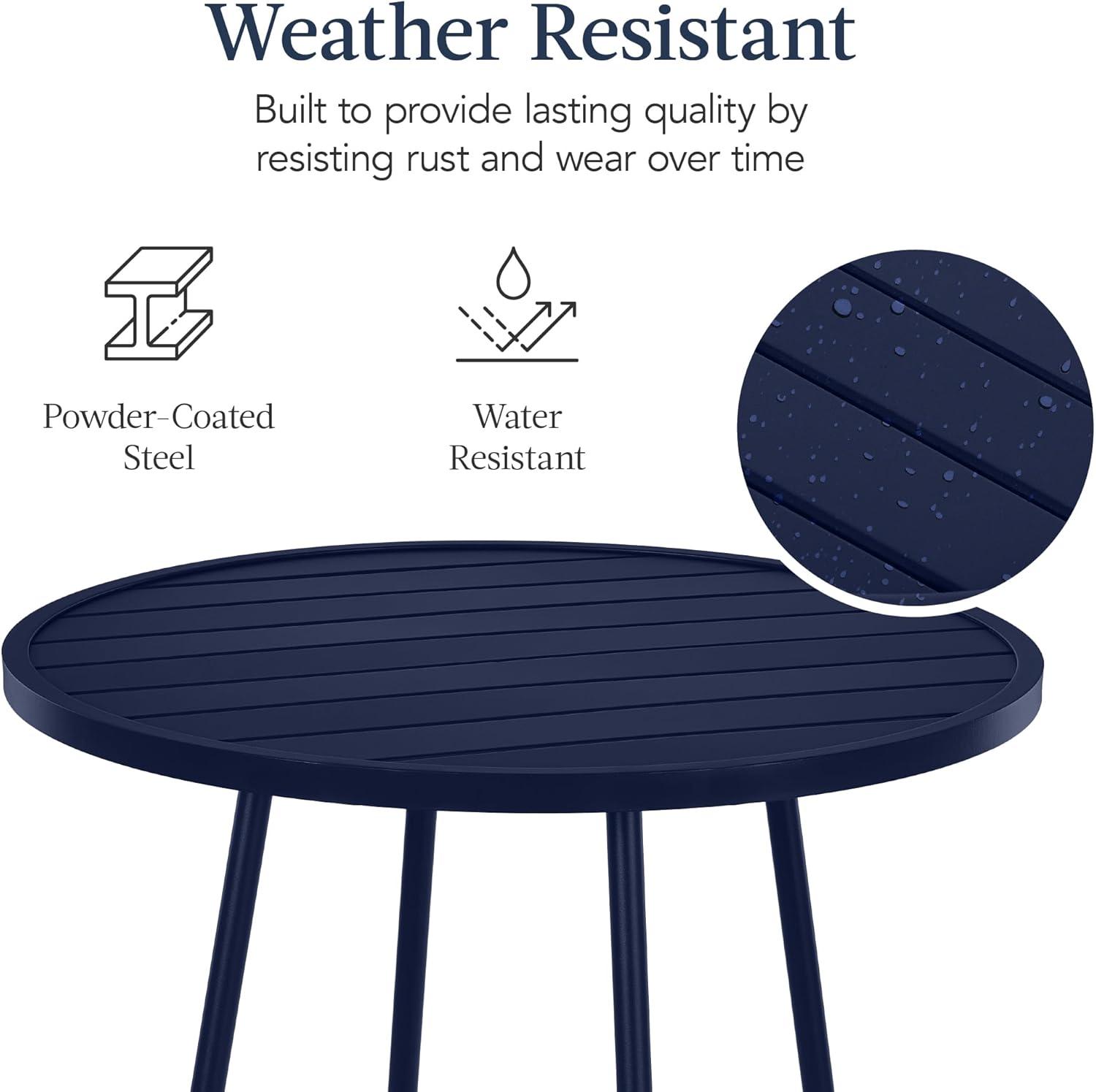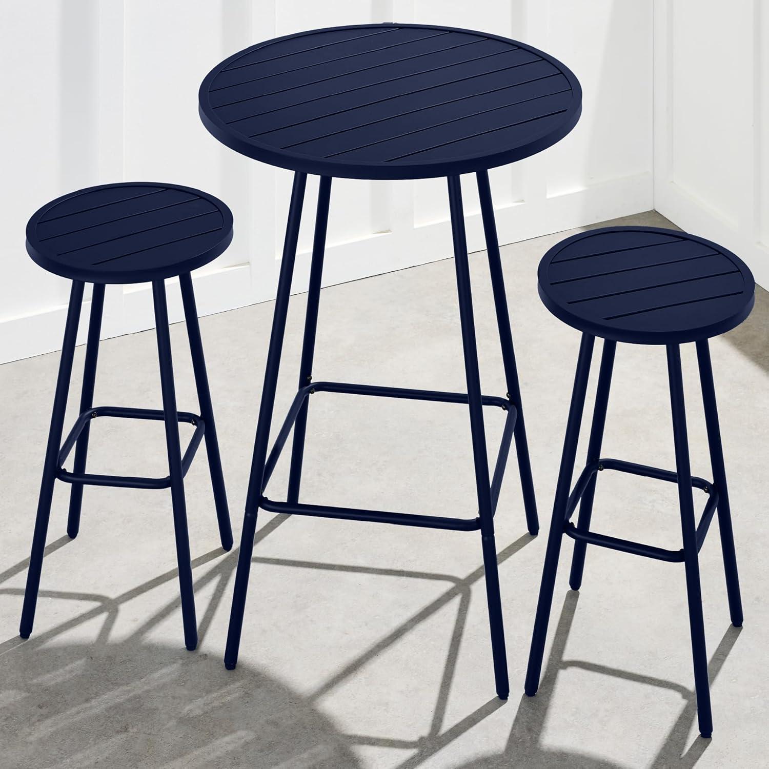 Best Choice Products 3-Piece Patio Dining Set, Bar Height, Outdoor Bistro Set, Outdoor Round Bar Table w/ 2 Bar Stools, Steel - Black(Navy)