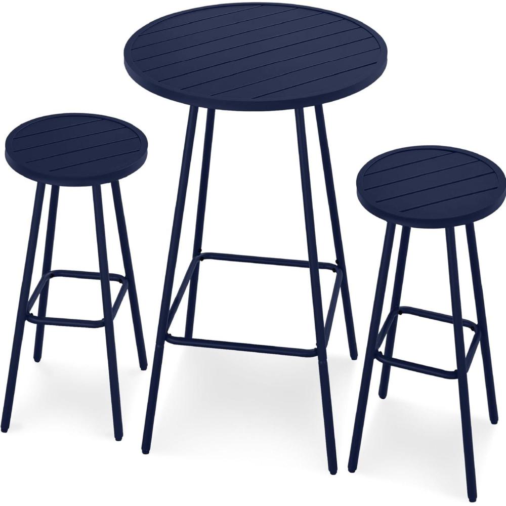 imageBest Choice Products 3Piece Patio Dining Set Bar Height Outdoor Bistro Set Outdoor Round Bar Table w 2 Bar Stools Steel  BlackNavy