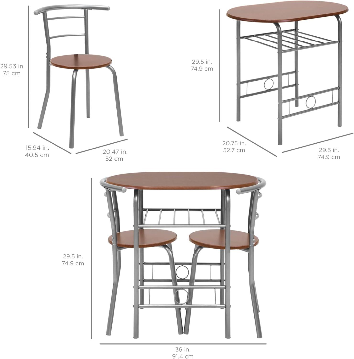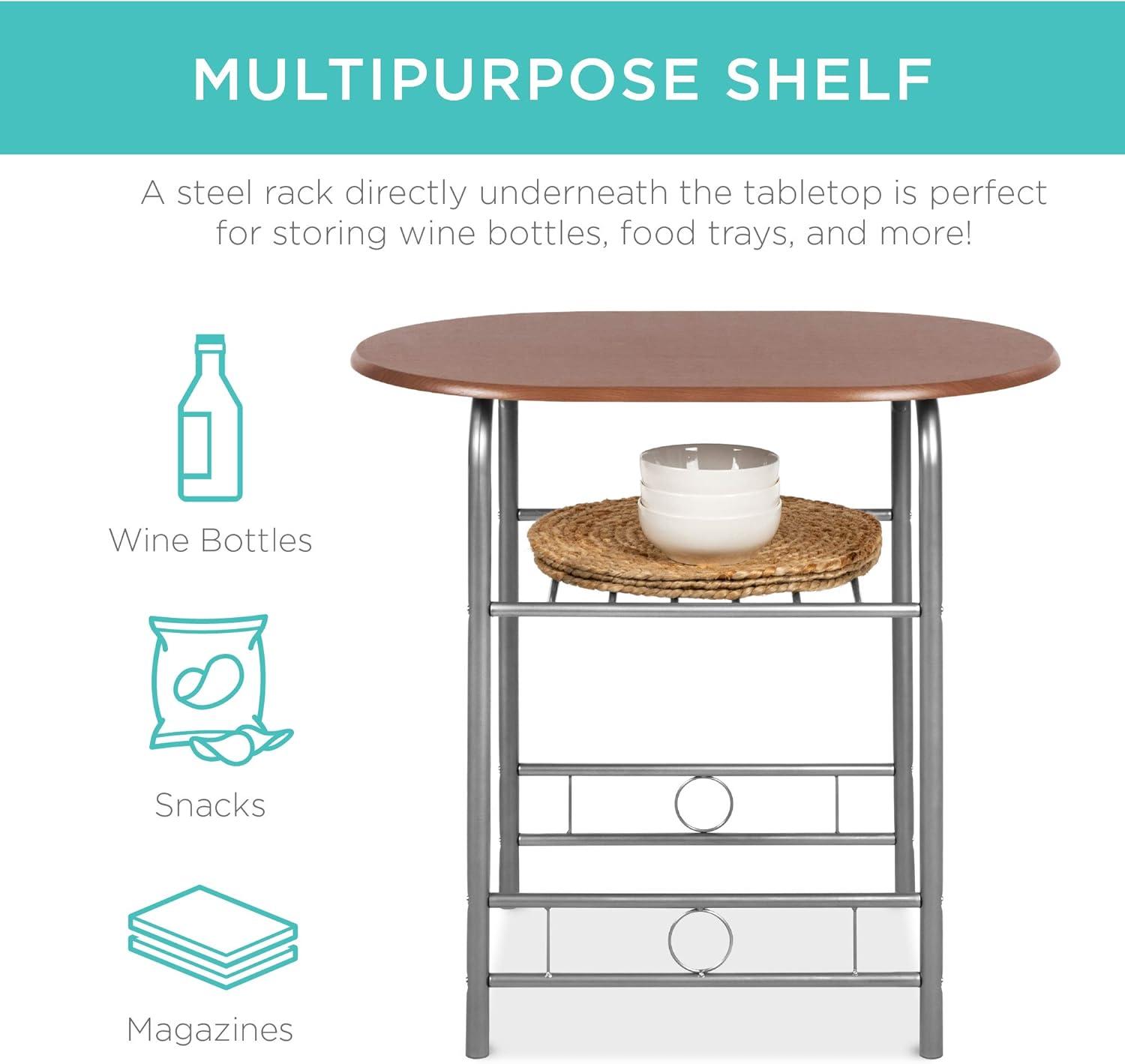 Best Choice Products 3-Piece Wooden Round Table & Chair Set for Kitchen, Dining Room, Compact Space w/Steel Frame, Built-in Wine Rack - White/Brown(Espresso)