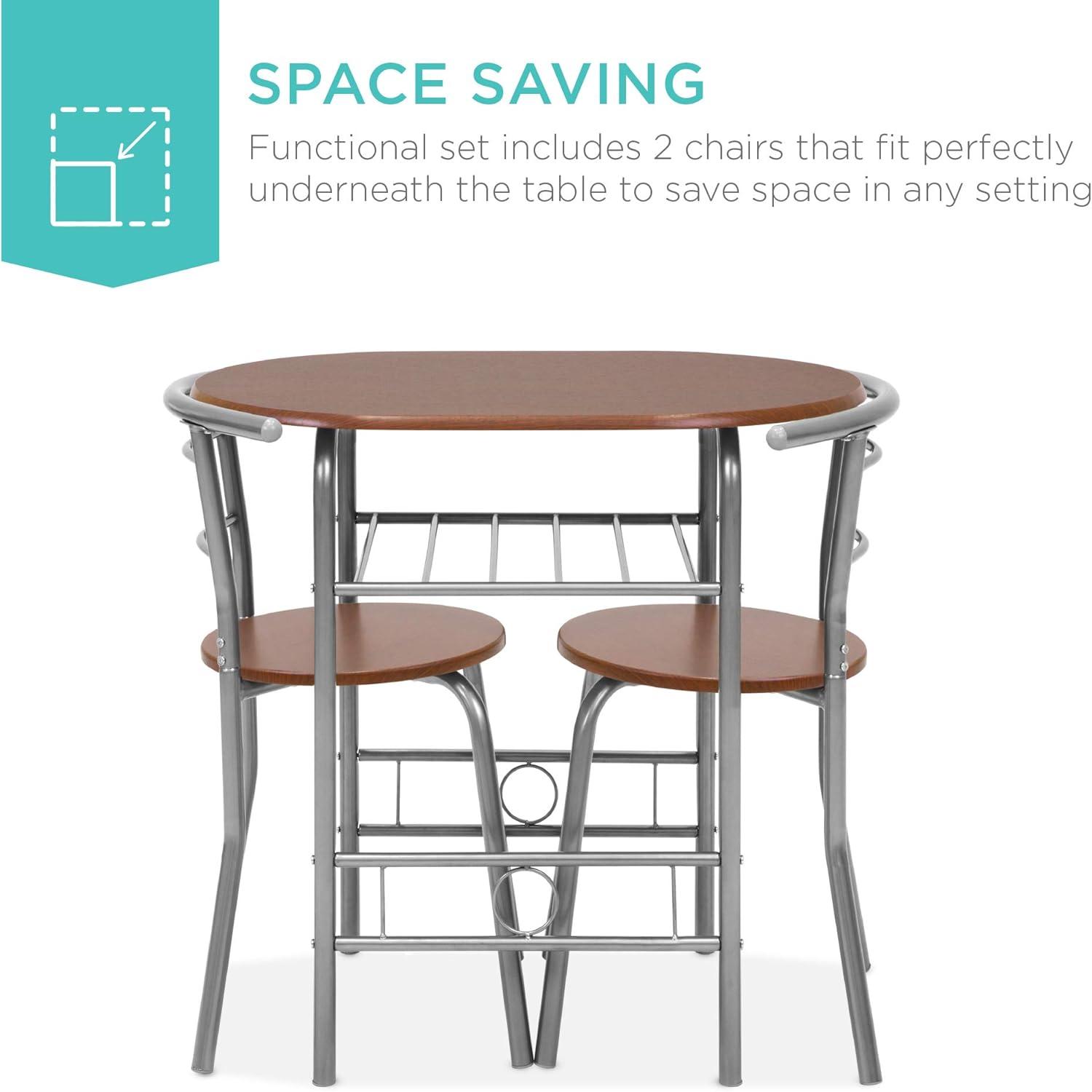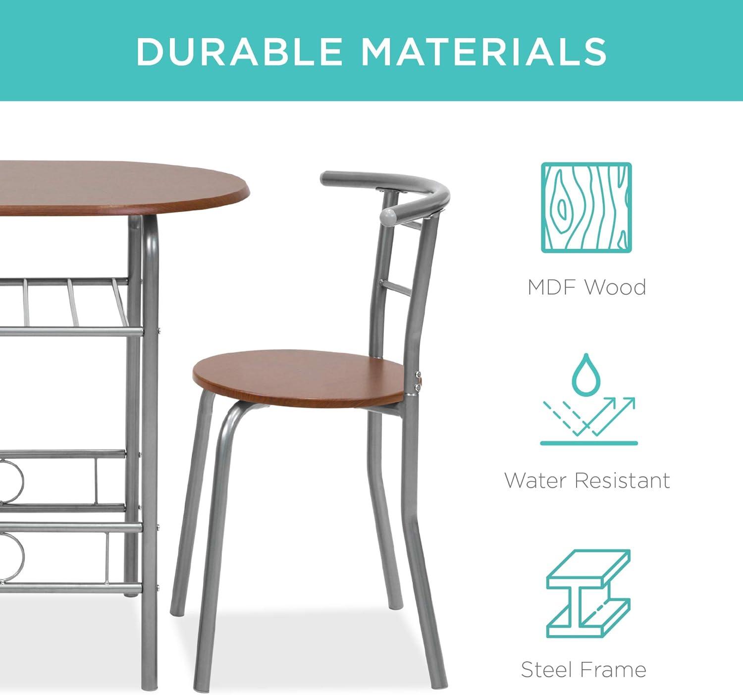 imageBest Choice Products 3Piece Wooden Round Table ampamp Chair Set for Kitchen Dining Room Compact Space wSteel Frame Builtin Wine Rack  WhiteBrownBlackSilver