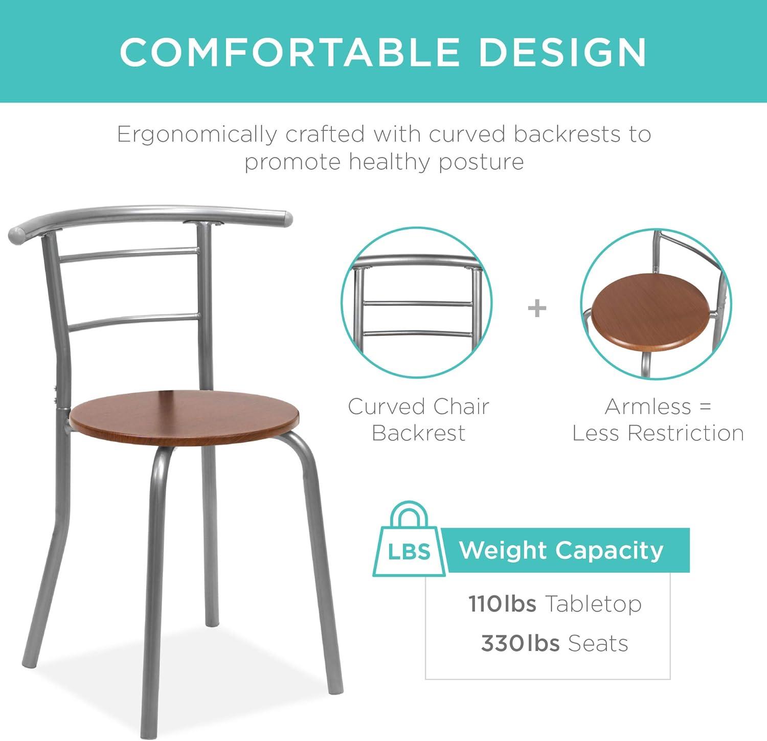 Compact Set: 3-piece wooden table and chair set is the perfect addition to small areas, such as dorms and apartments, for an intimate meal with your favorite guest; Table Dimensions: 29.5″(L) x 20.75″(W) x 29.5″(H); Table Weight Capacity: 110 lbs.