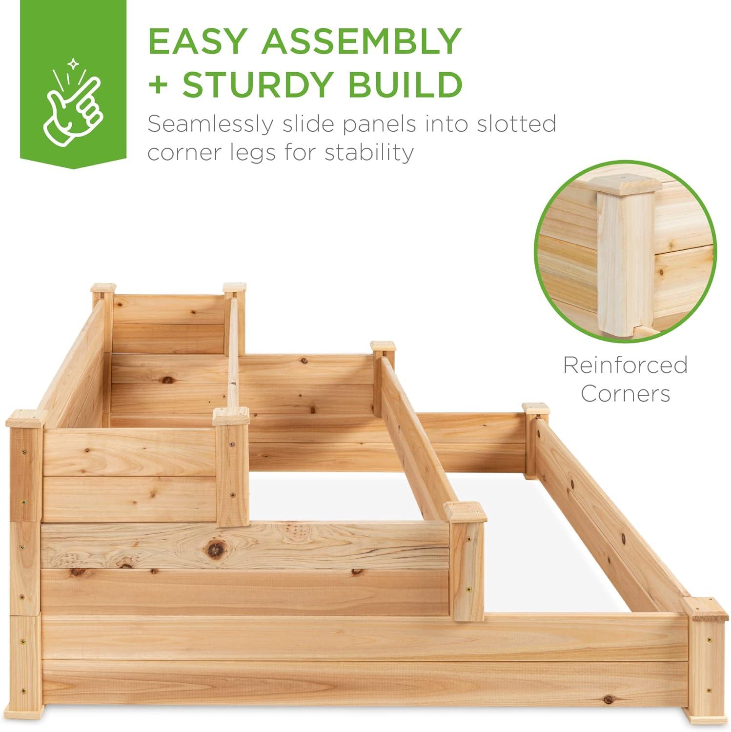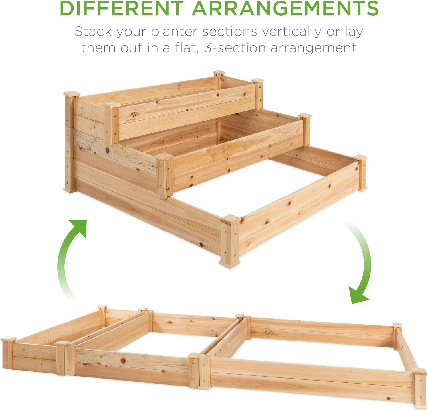 Best Choice Products 3-Tier Fir Wood Raised Garden Bed Planter Kit for Plants, Herbs, Vegetables, Outdoor Gardening w/Stackable & Flat Arrangement, Easy Assembly - Acorn Brown(Natural)