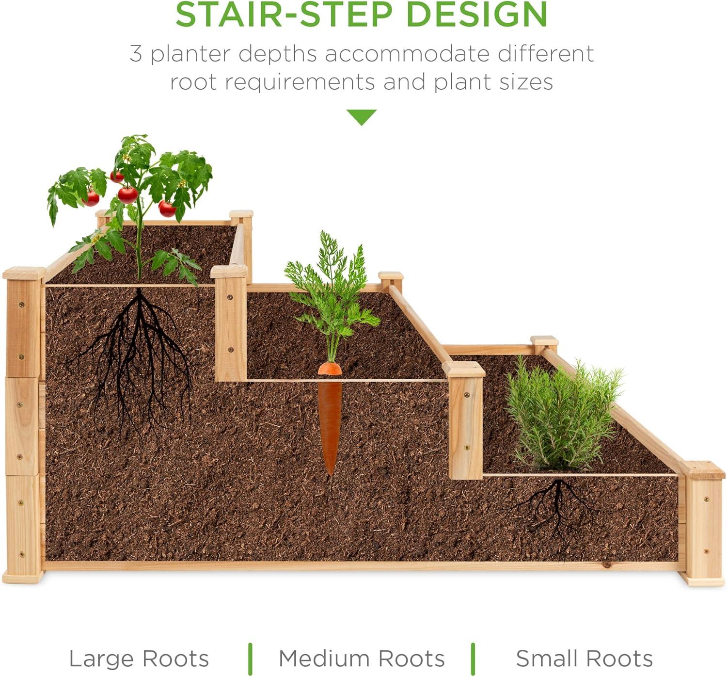 STAIR-STEP DESIGN: Designed with 3 different depths: 22in, 15in, and 8in – making it perfect for growing plants and vegetables with root lengths from short to medium and long