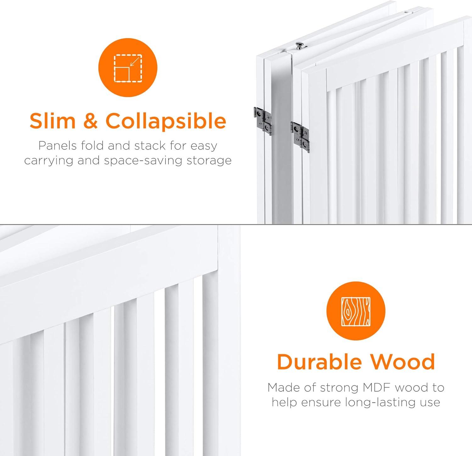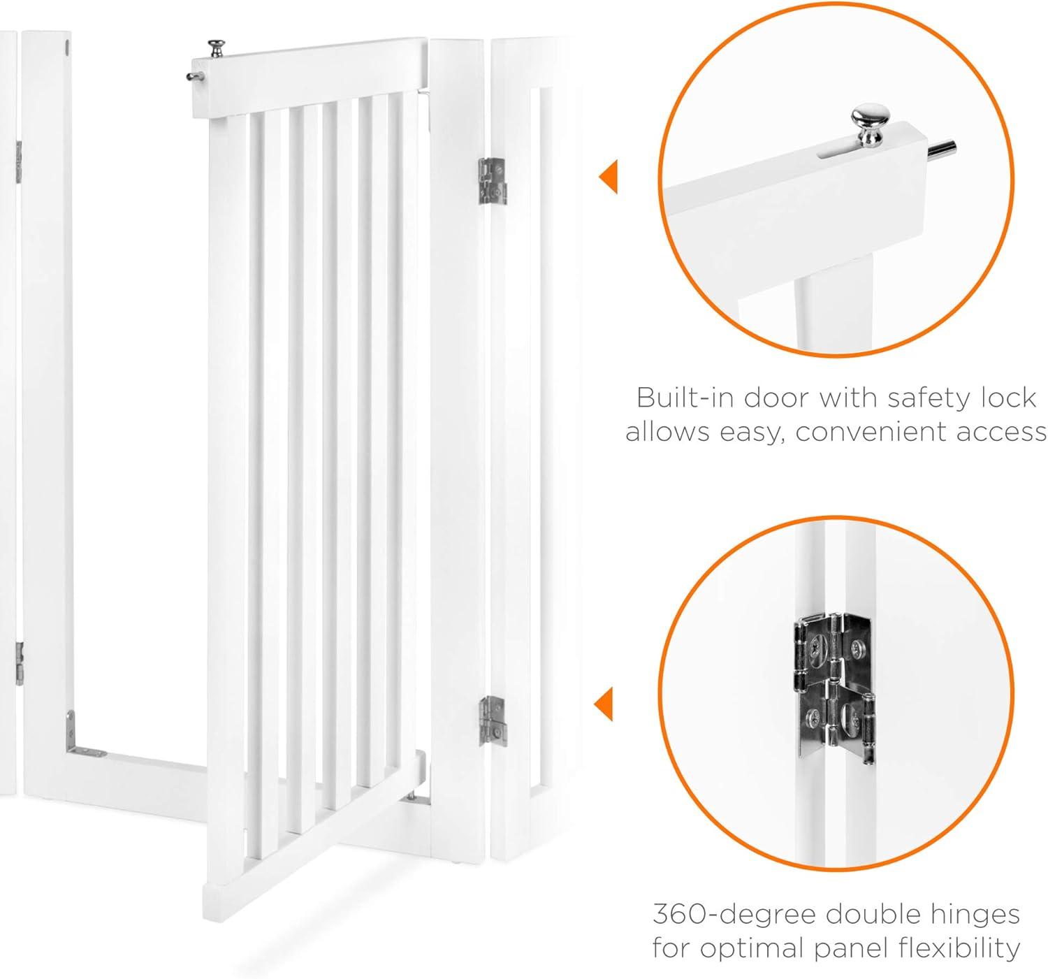 360-DEGREE DOUBLE HINGES: Panels are all connected by double hinges, making it easy to fold or straighten the fence. Utilize its versatility by easily attaching a second gate to increase the size and create an enclosed playpen.