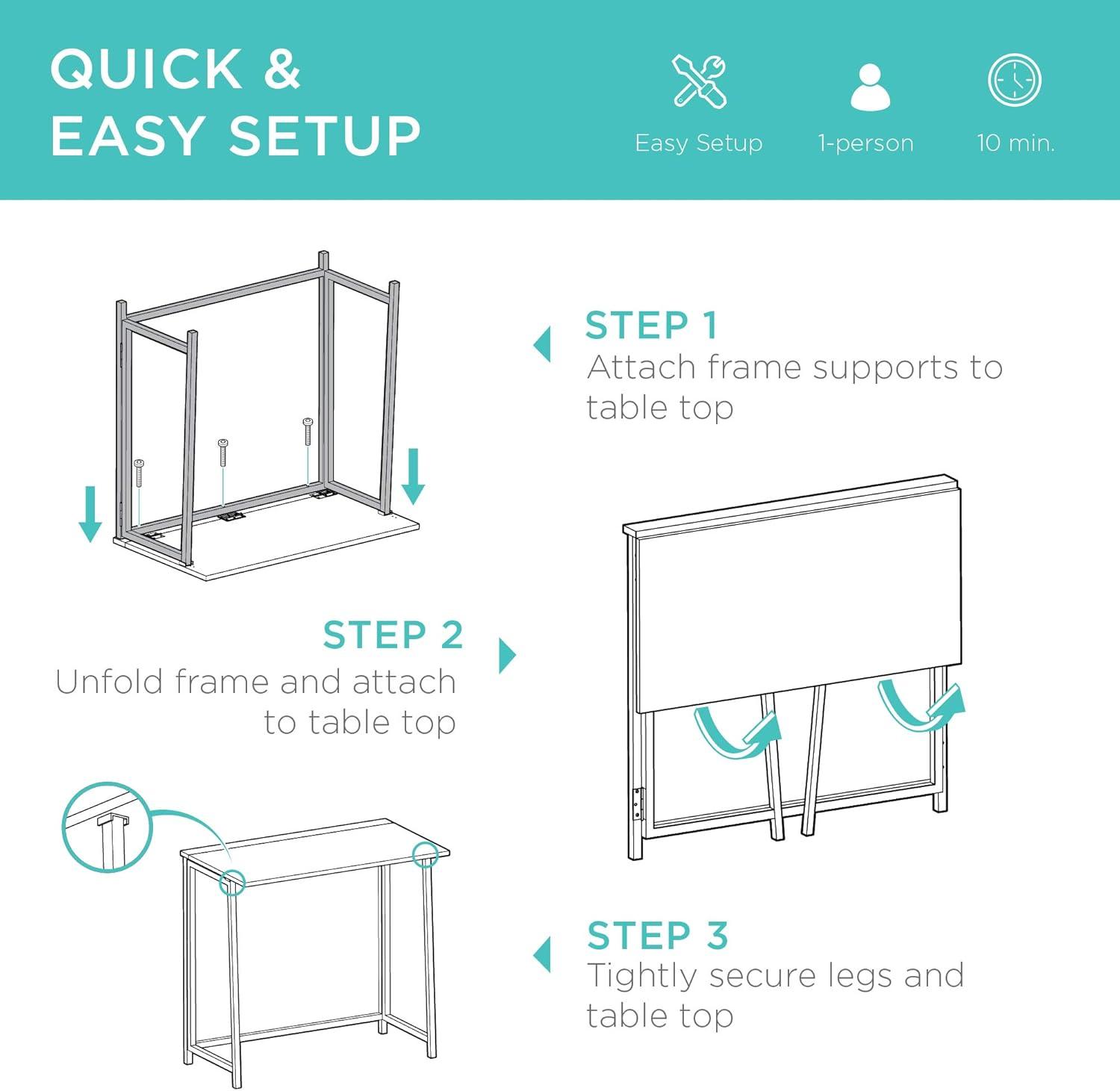 QUICK & EASY SETUP: Have this desk ready for use in no time by simply attaching frame supports to the table top before unfolding the frame and attaching it to the table top