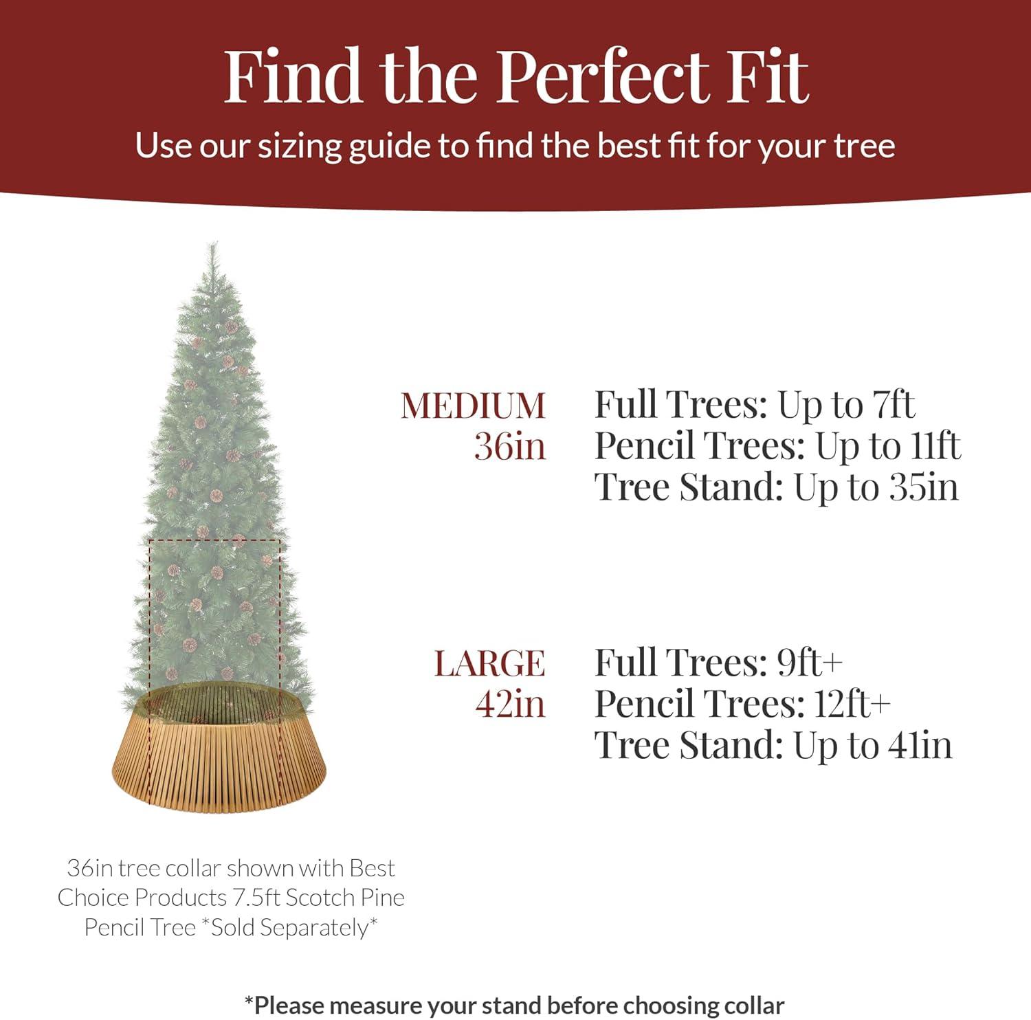 ONE SIZE FITS MANY: Use our sizing chart to determine which tree collar will best fit your tree – suitable for traditional trees, full trees, and more! Sizing: (36″/42″) up to 7.5ft trees or 35″ Stand/8ft+ or up to 41″ Stand
