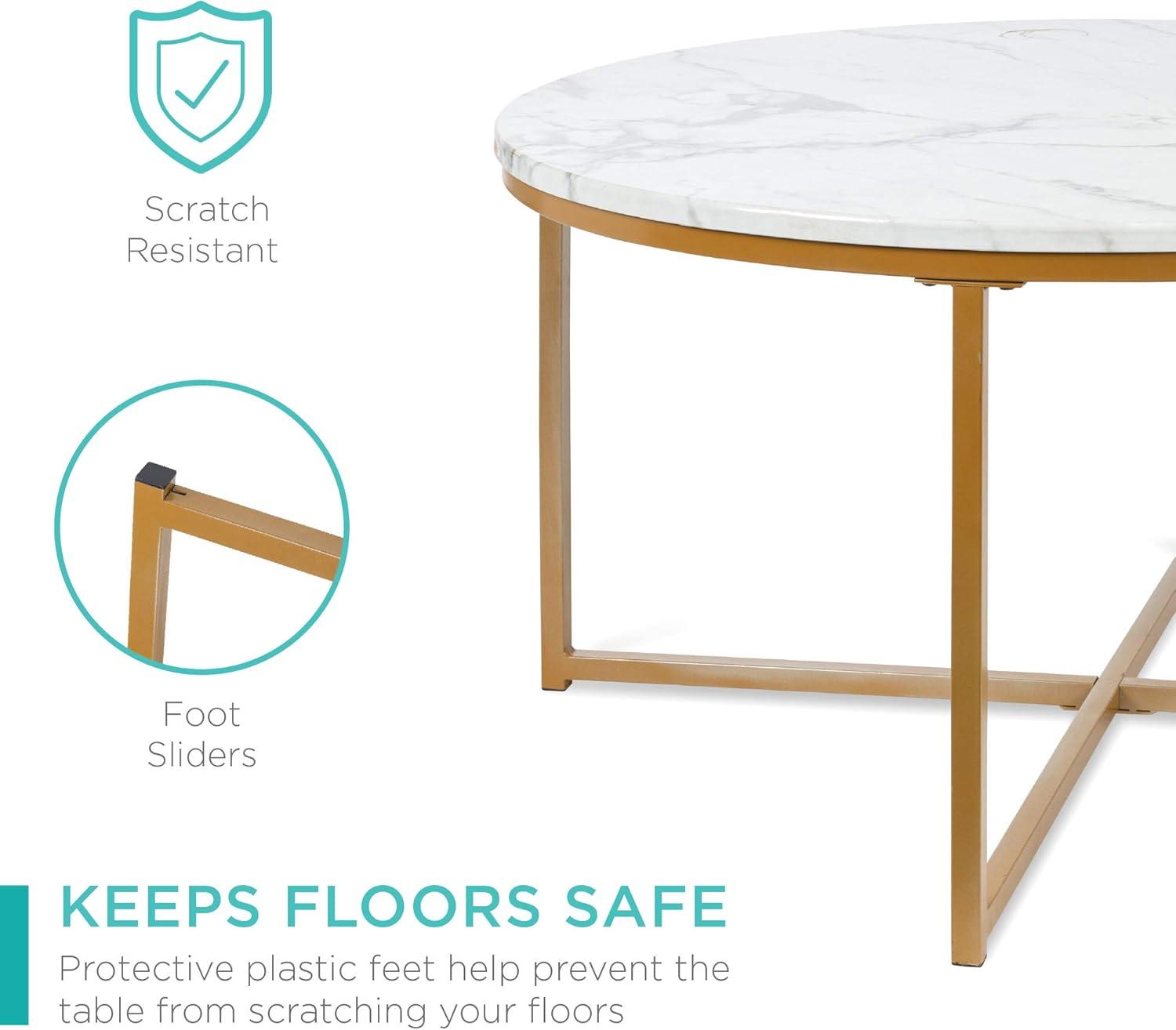 STURDY BUILD: Legs are connected with a cross design for maximum stability under a durable, laminate faux marble table top that holds over 100 pounds, fusing durability with a modern-contemporary look