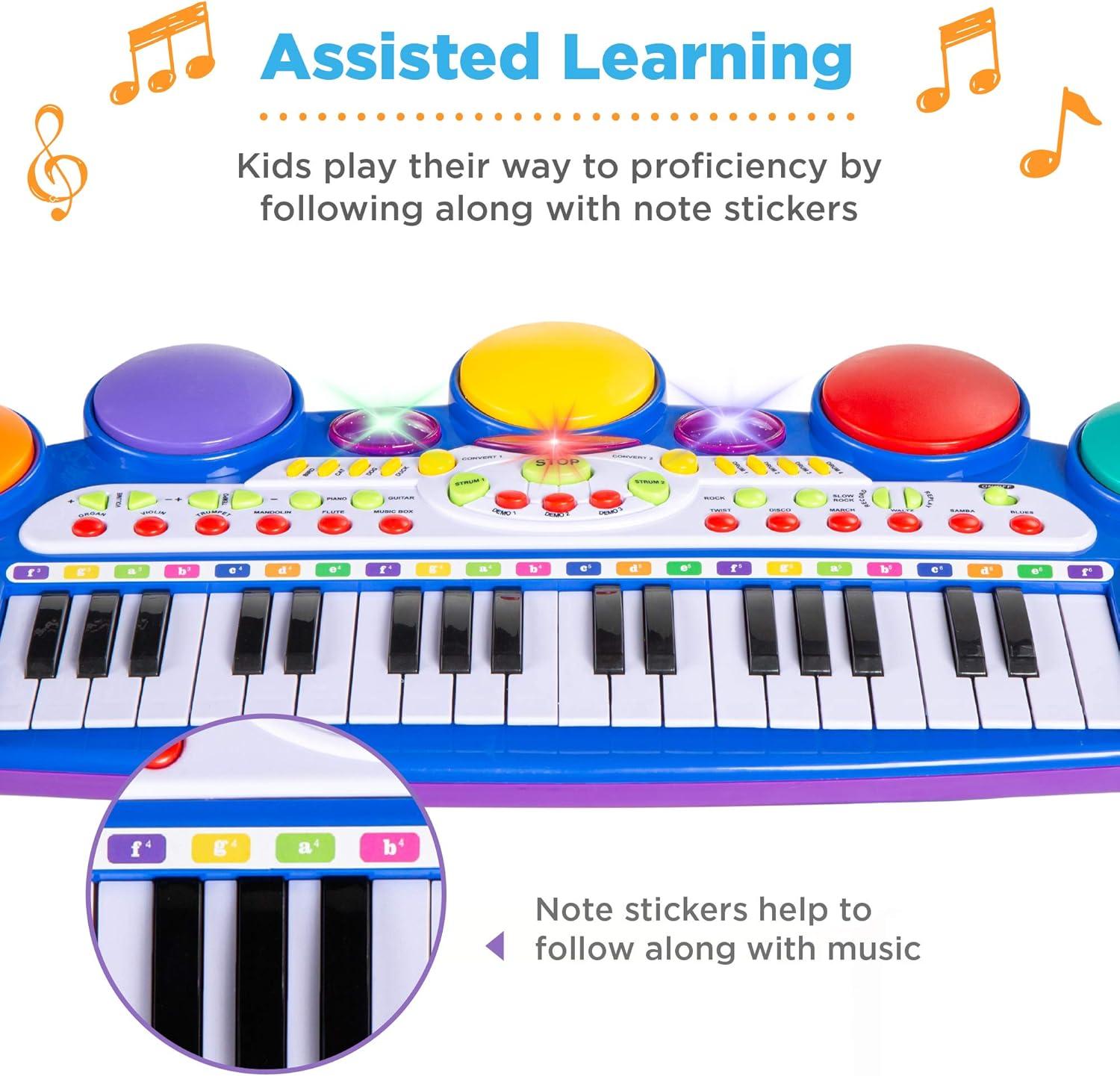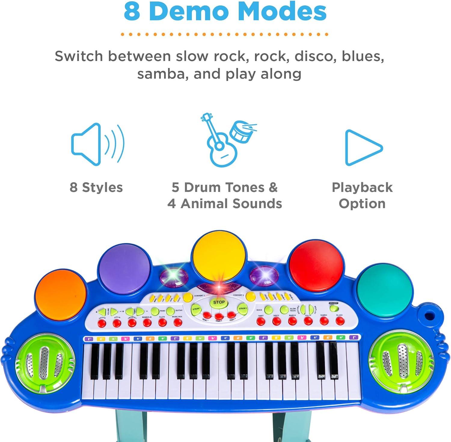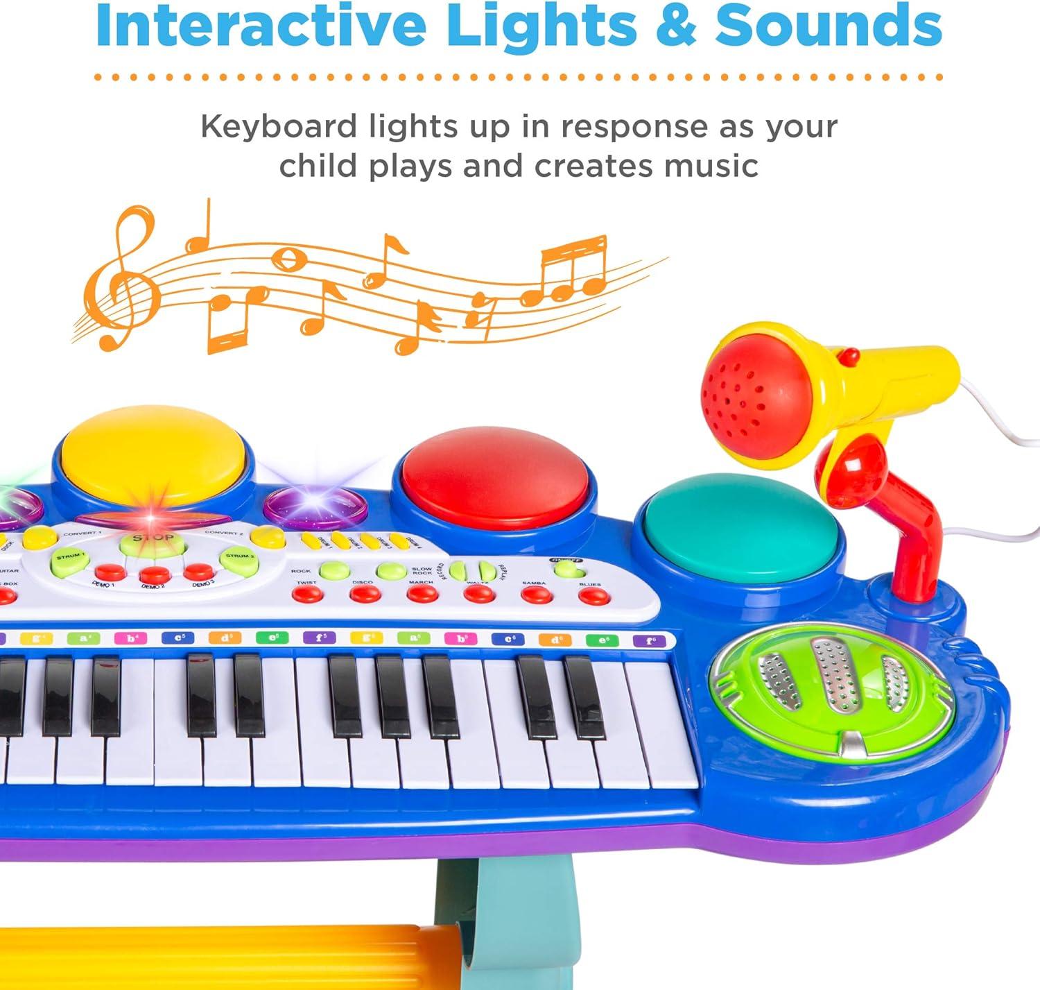 Best Choice Products 37-Key Kids Electronic Musical Instrument Piano Learning Toy Keyboard w/Multiple Sounds, Lights, Microphone, Stool – Blue(Blue)