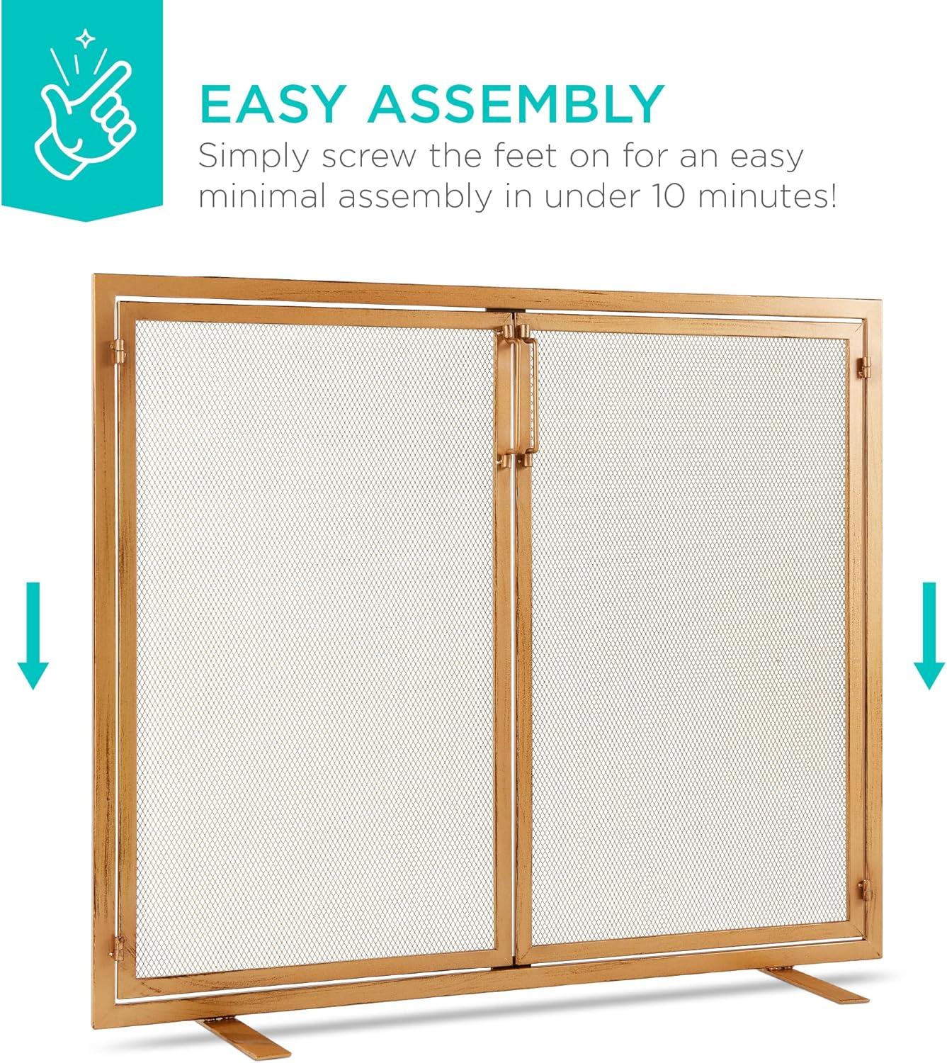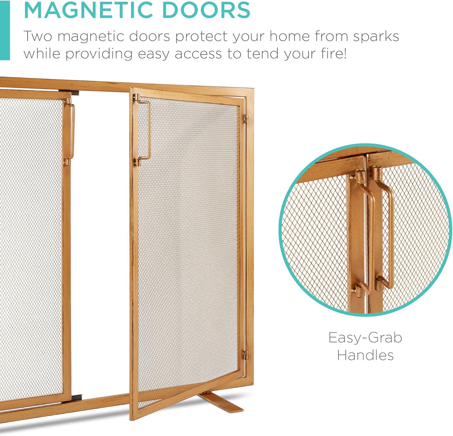 Best Choice Products 38.5x31in 2-Door Fireplace Screen, Handcrafted Wrought Iron Decorative Mesh Geometric Fire Spark Guard w/Magnetic Panels – Black(Gold)