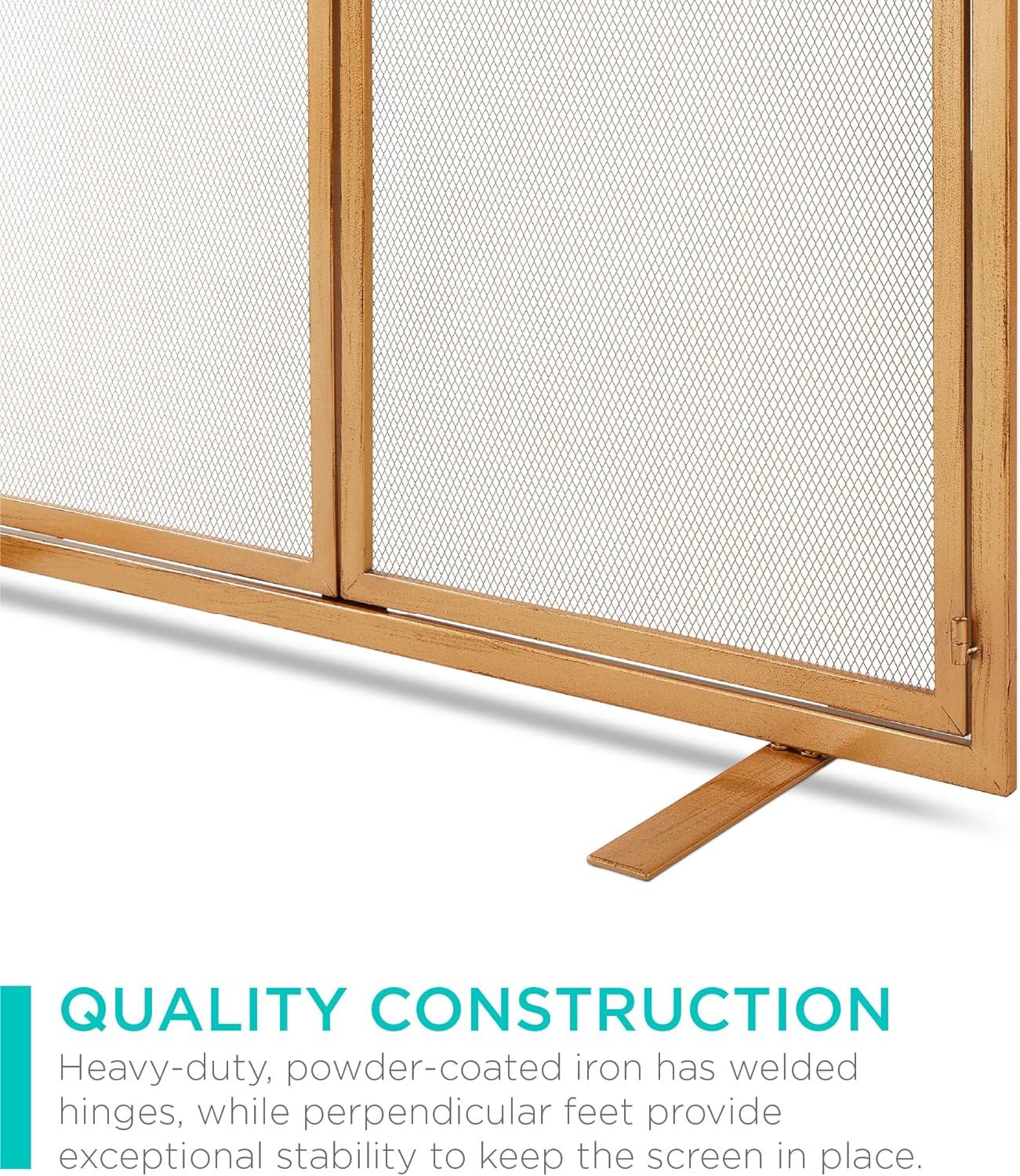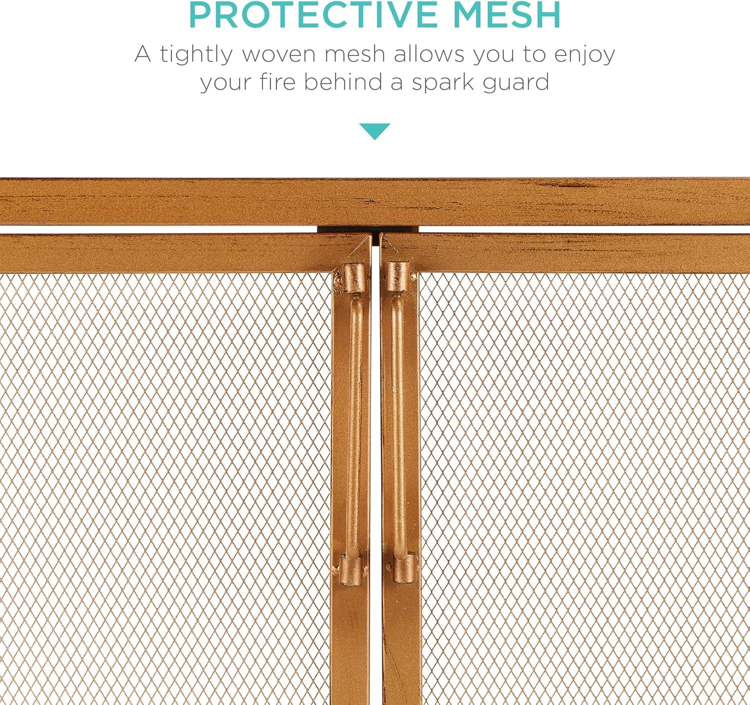 Best Choice Products 47.5×27.25in 3-Panel Simple Steel Mesh Fireplace Screen, Fire Spark Guard Grate for Living Room Home Decor w/Rustic Worn Finish – Black(Antique Gold)