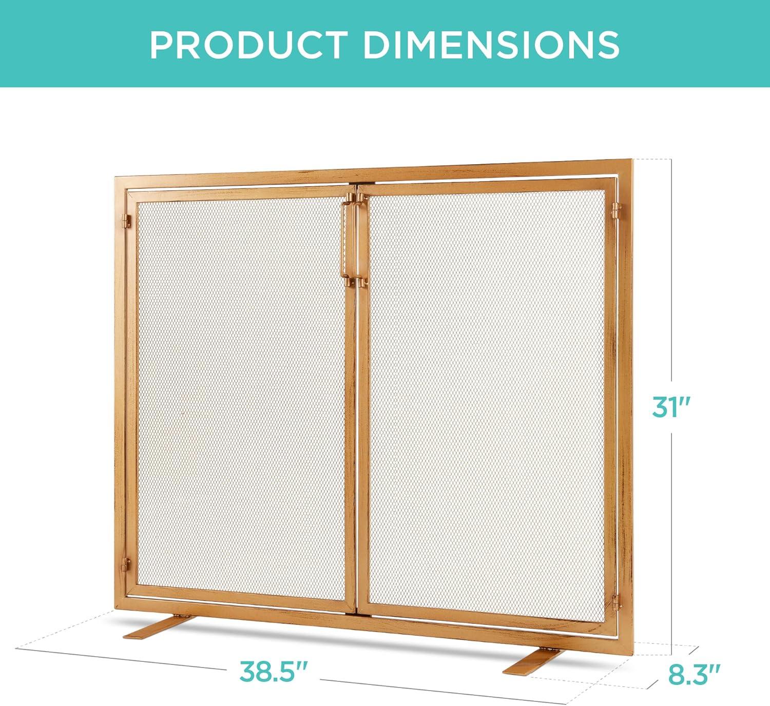 Best Choice Products 38.5x31in 2-Door Fireplace Screen, Handcrafted Wrought Iron Decorative Mesh Geometric Fire Spark Guard w/Magnetic Panels - Black(Gold)