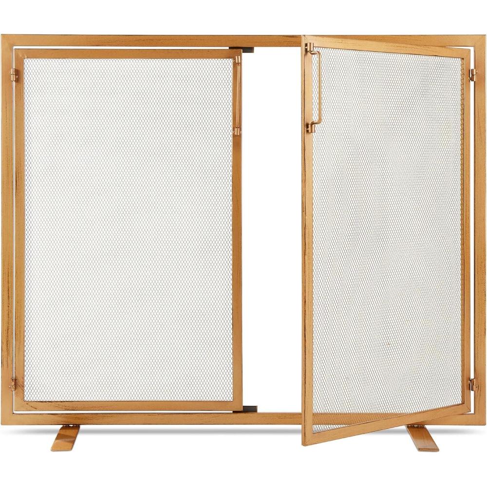 imageBest Choice Products 475x2725in 3Panel Simple Steel Mesh Fireplace Screen Fire Spark Guard Grate for Living Room Home Decor wRustic Worn Finish  BlackAntique Gold