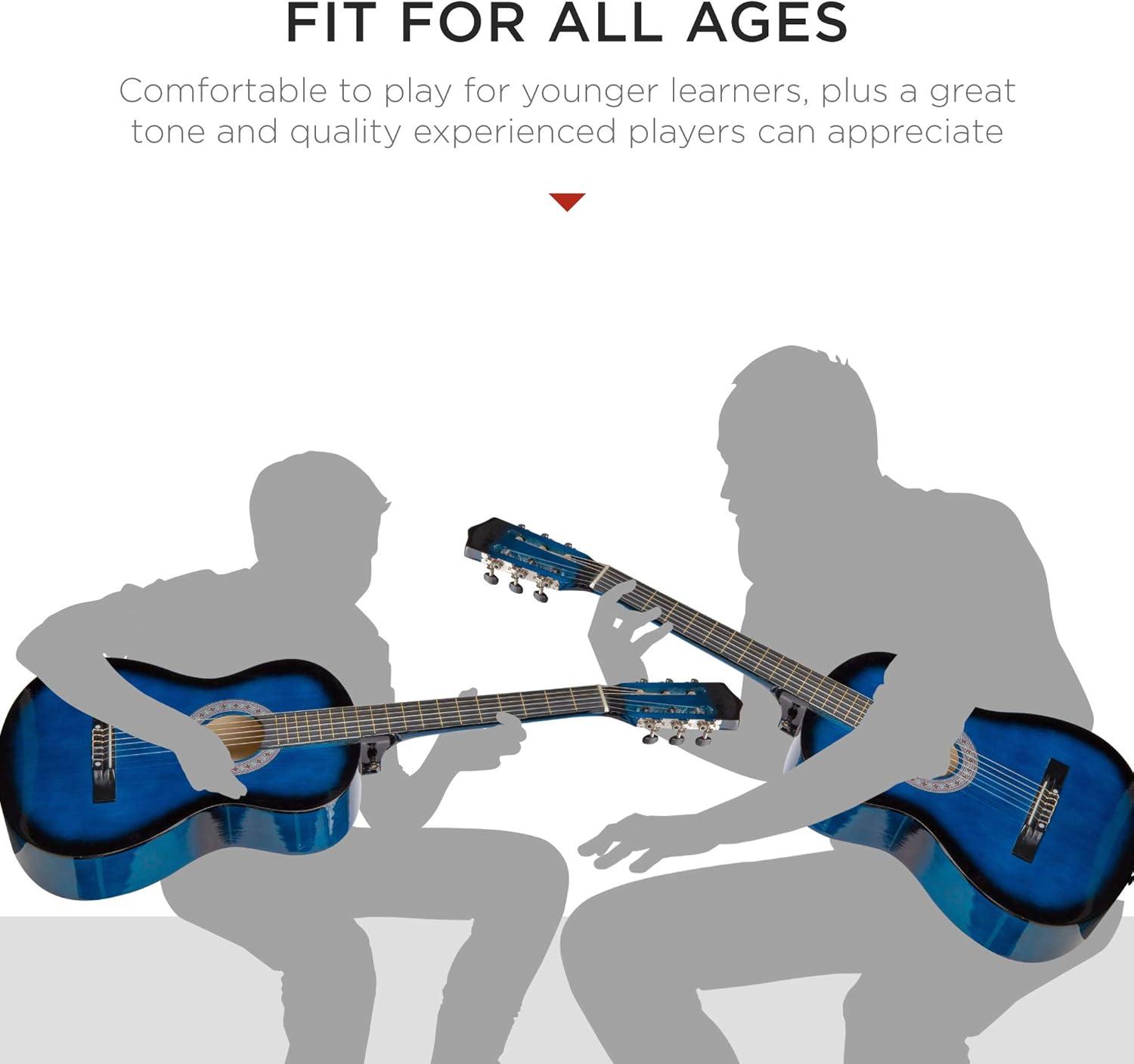Best Choice Products 38in Beginner All Wood Acoustic Guitar Starter Kit w/Gig Bag, 6 Picks, Nylon Strings, Strap w/Pick Holder – Natural(Blueburst)