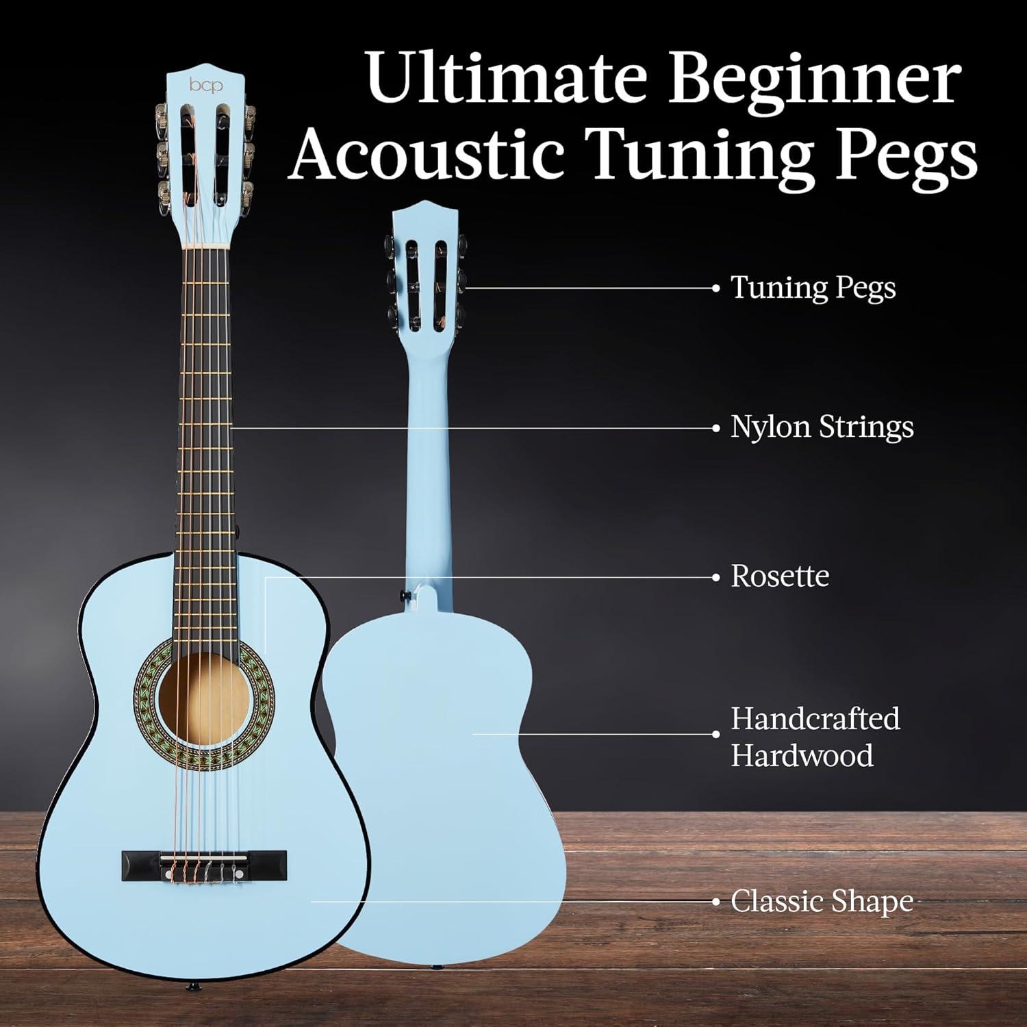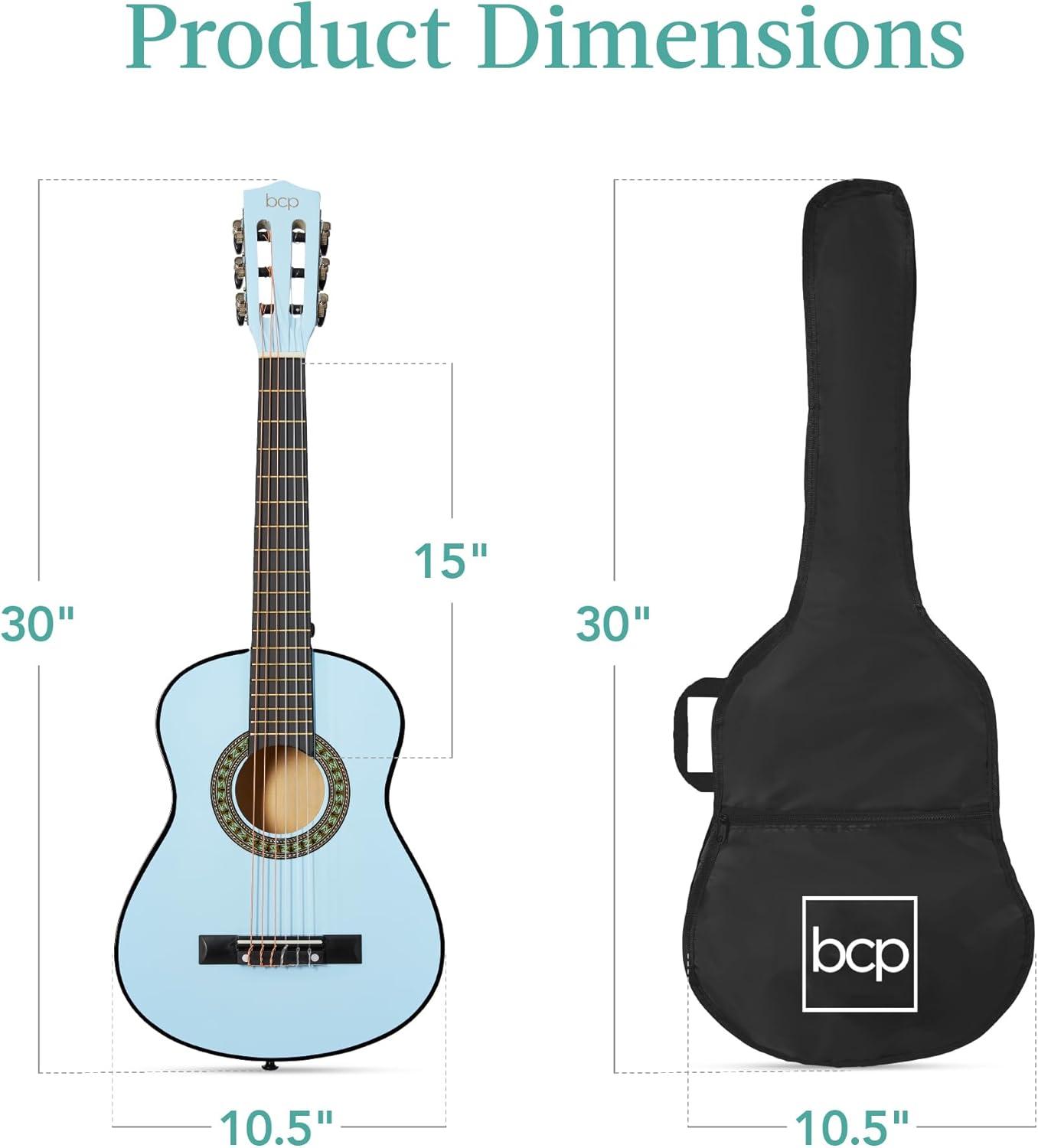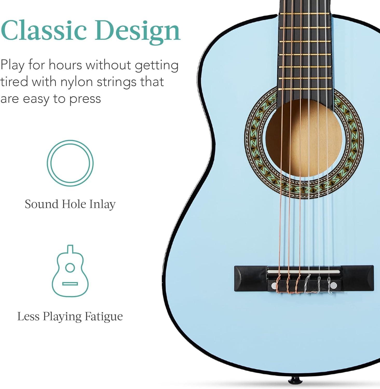 Best Choice Products 38in Beginner All Wood Acoustic Guitar Starter Kit w/Gig Bag, 6 Picks, Nylon Strings, Strap w/Pick Holder – Natural(Light Blue)