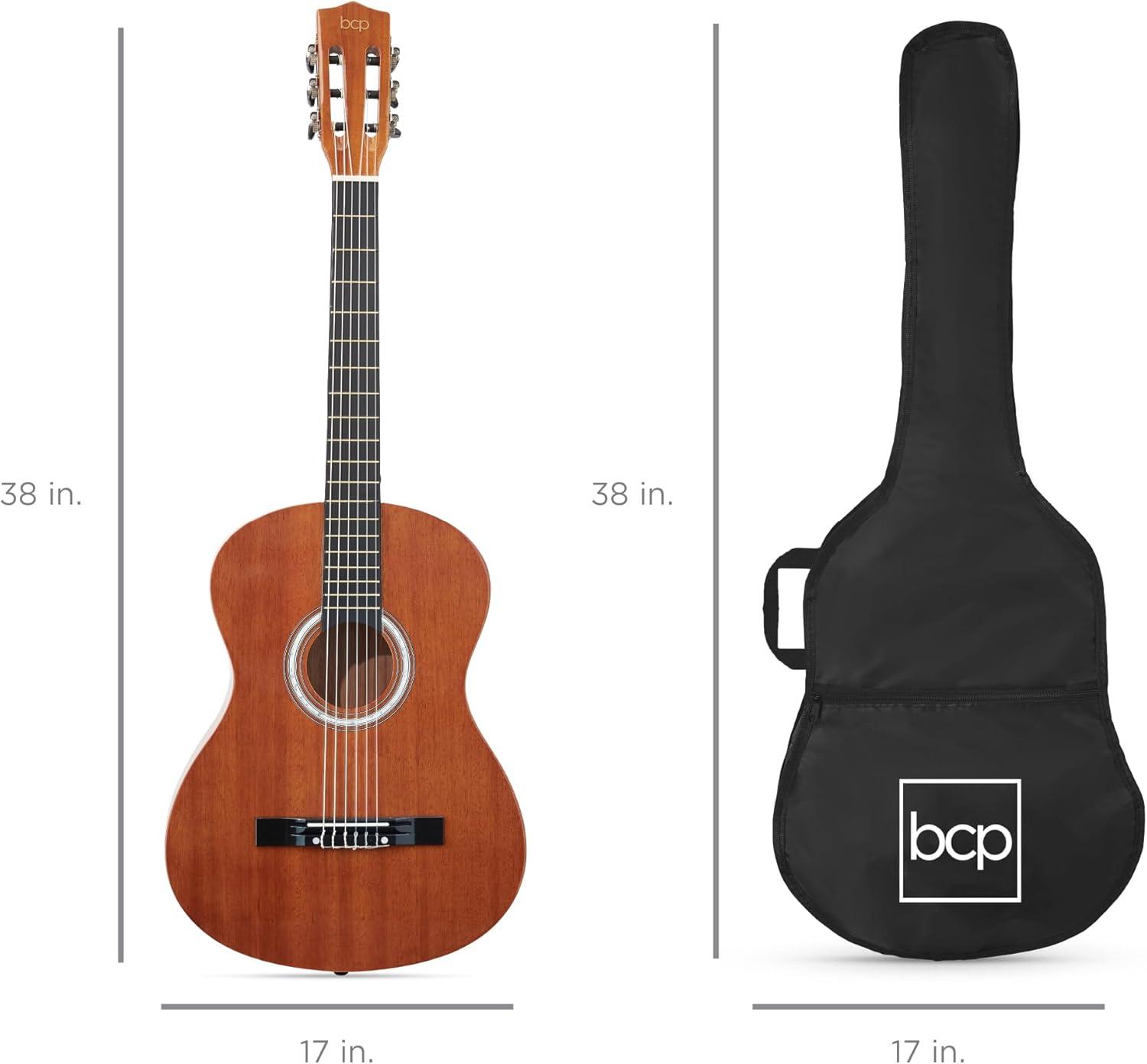 Best Choice Products 38in Beginner All Wood Acoustic Guitar Starter Kit w/Gig Bag, 6 Picks, Nylon Strings, Strap w/Pick Holder – Natural(Natural Mahogany)