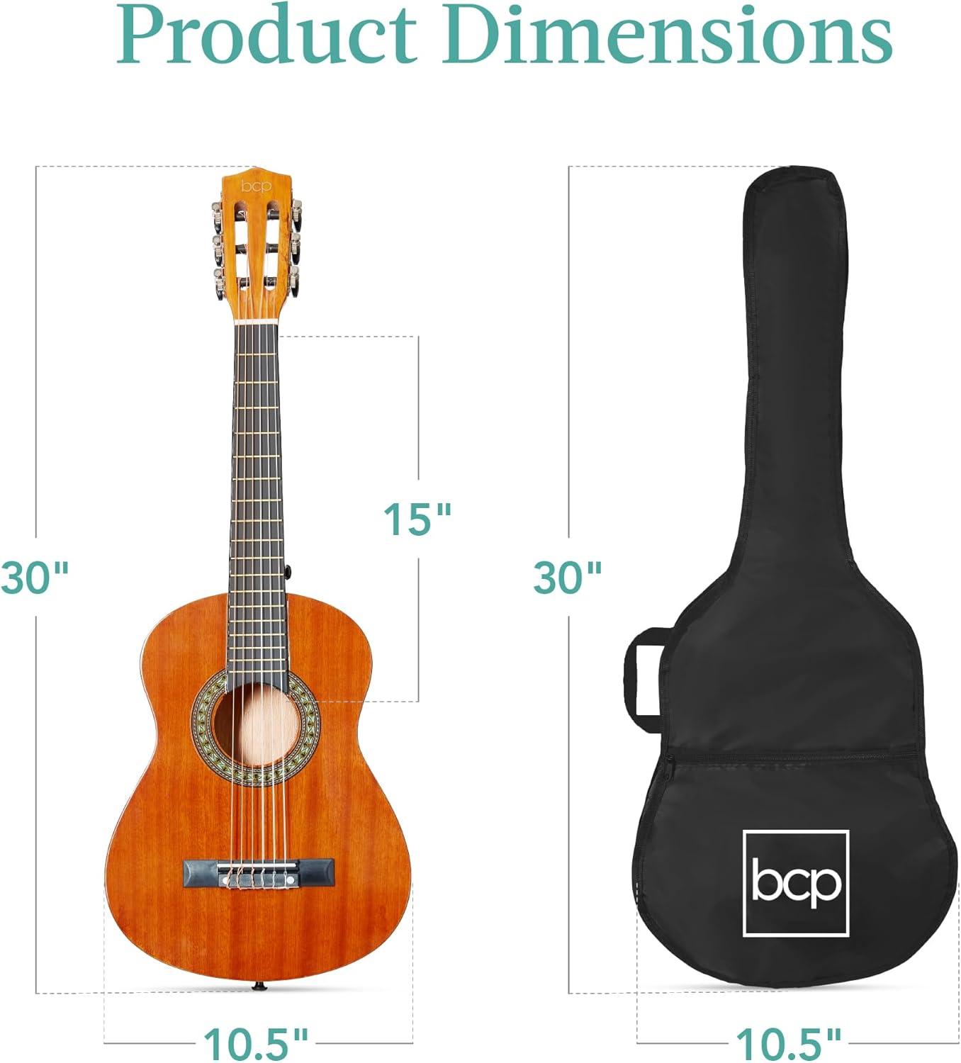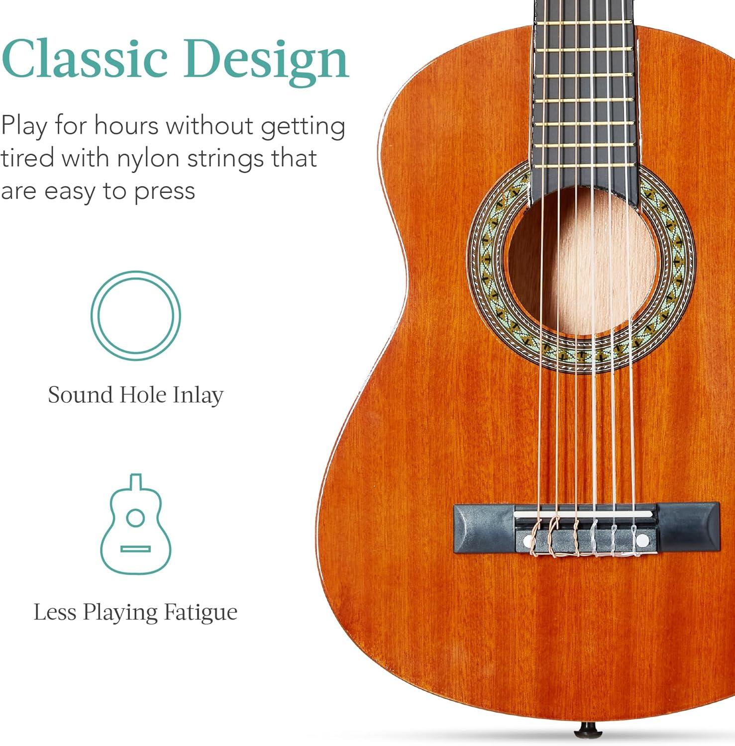 EASY TO PLAY: Learning to play on this guitar is easy with nylon strings that are easier to hold down, reduce damage on the guitar bridge, and stay in tune, producing a beautiful tone while playing; OVERALL DIMENSIONS: 38″(L) x 14″(W) x 4.3″(H)