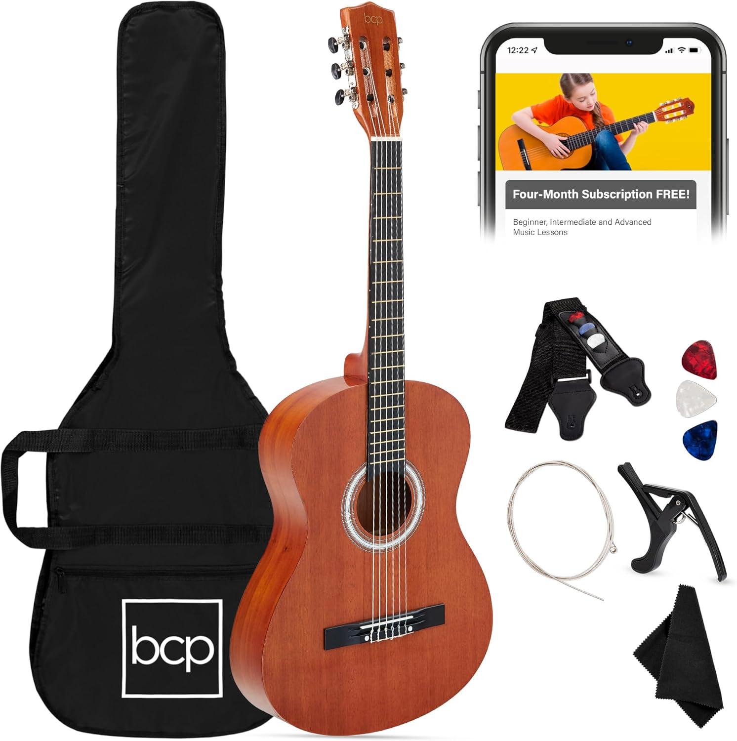 Best Choice Products 38in Beginner All Wood Acoustic Guitar Starter Kit w/Gig Bag, 6 Picks, Nylon Strings, Strap w/Pick Holder – Natural(Natural)