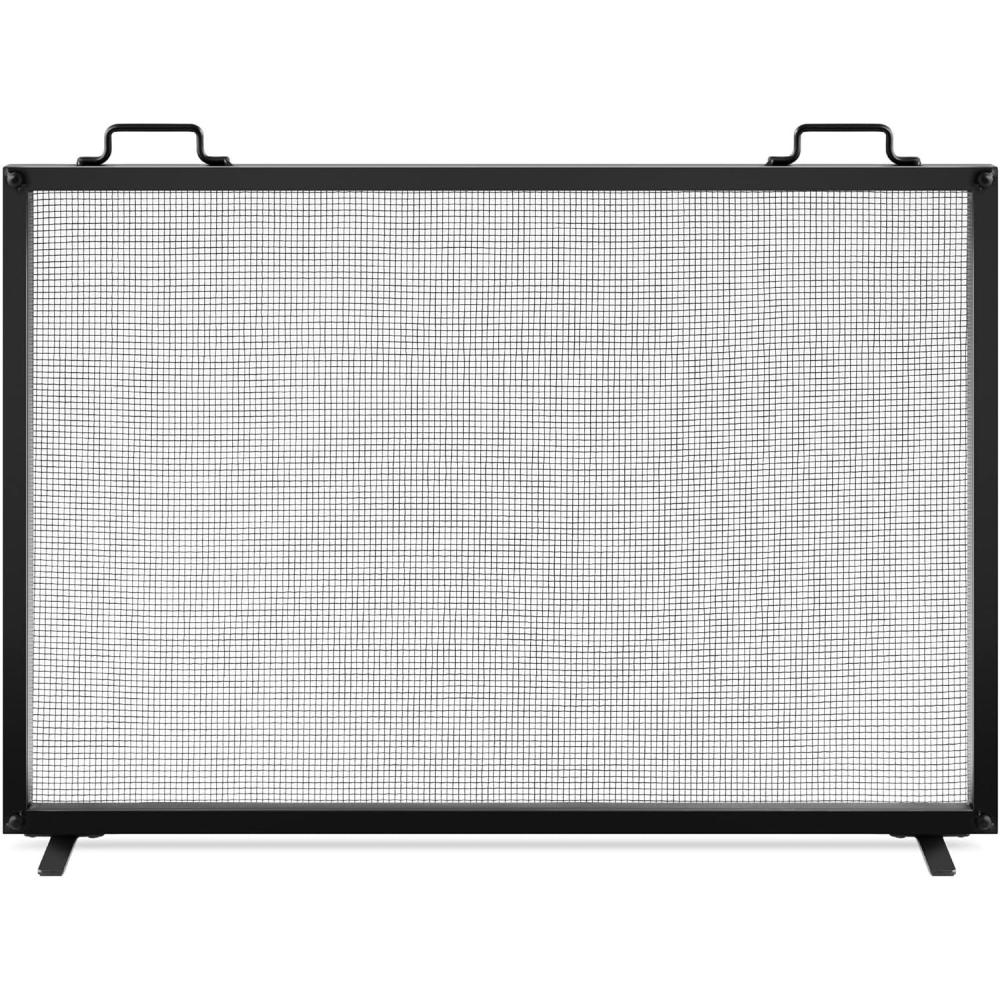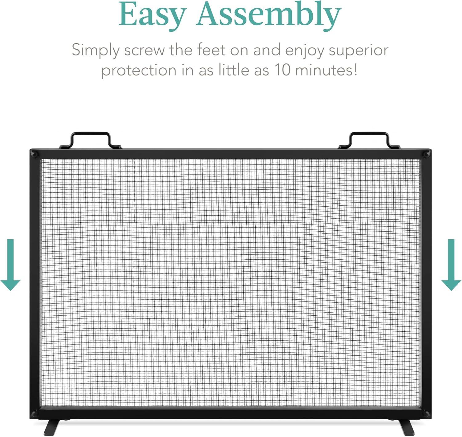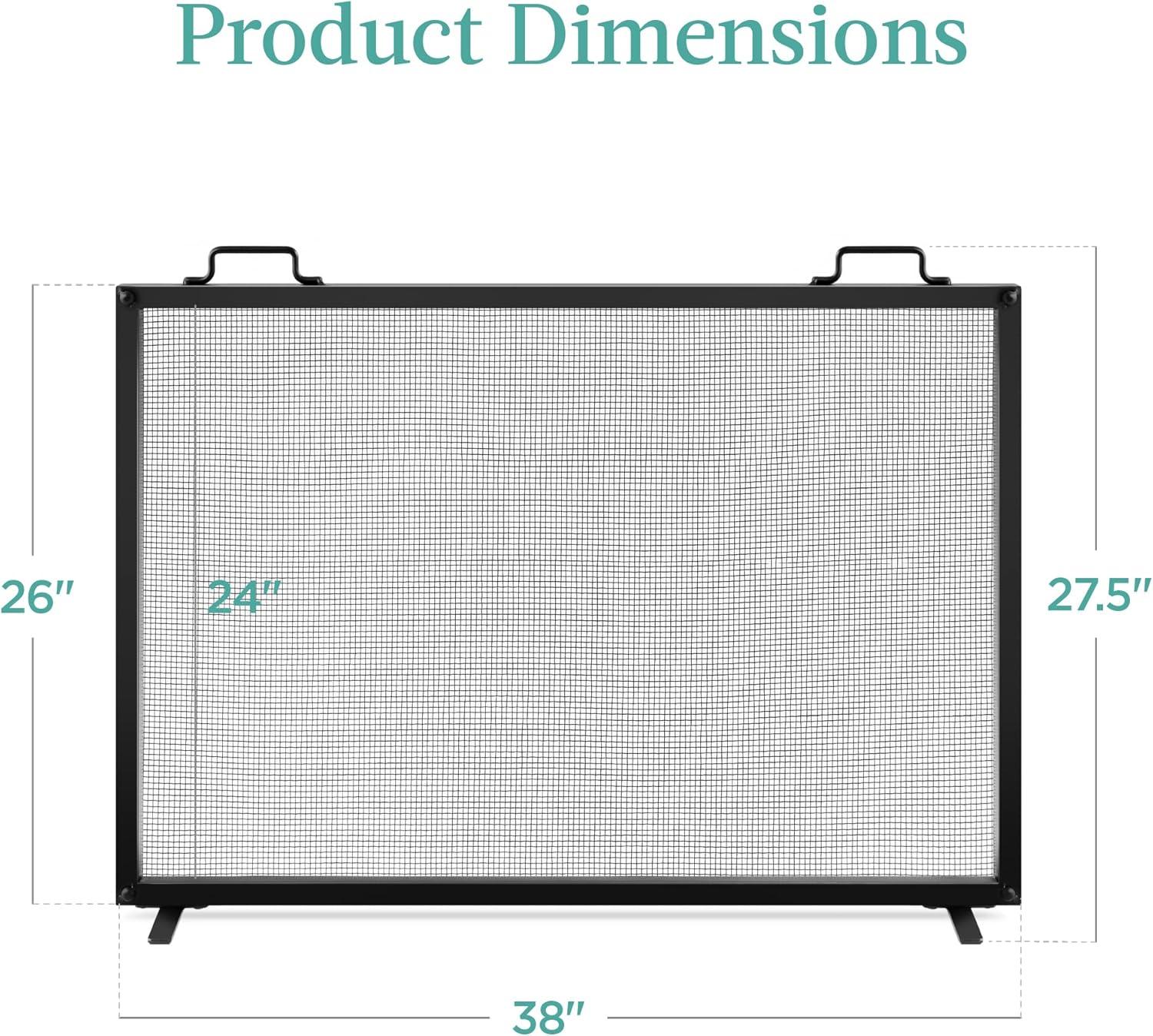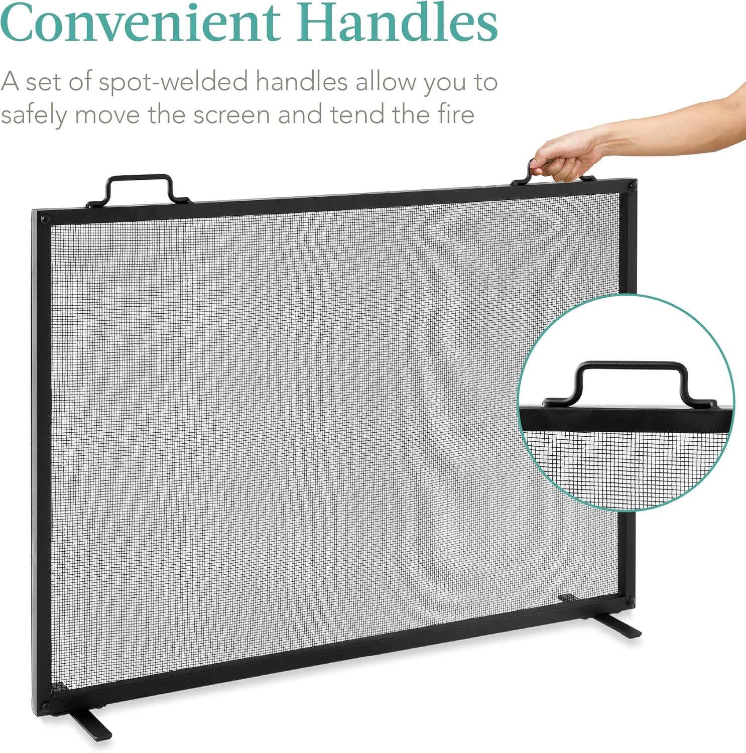 Best Choice Products 38x27in Single Panel Fireplace Screen Handcrafted Steel Mesh Spark Guard for Living Room, Bedroom Décor w/Handles – Black(Black)