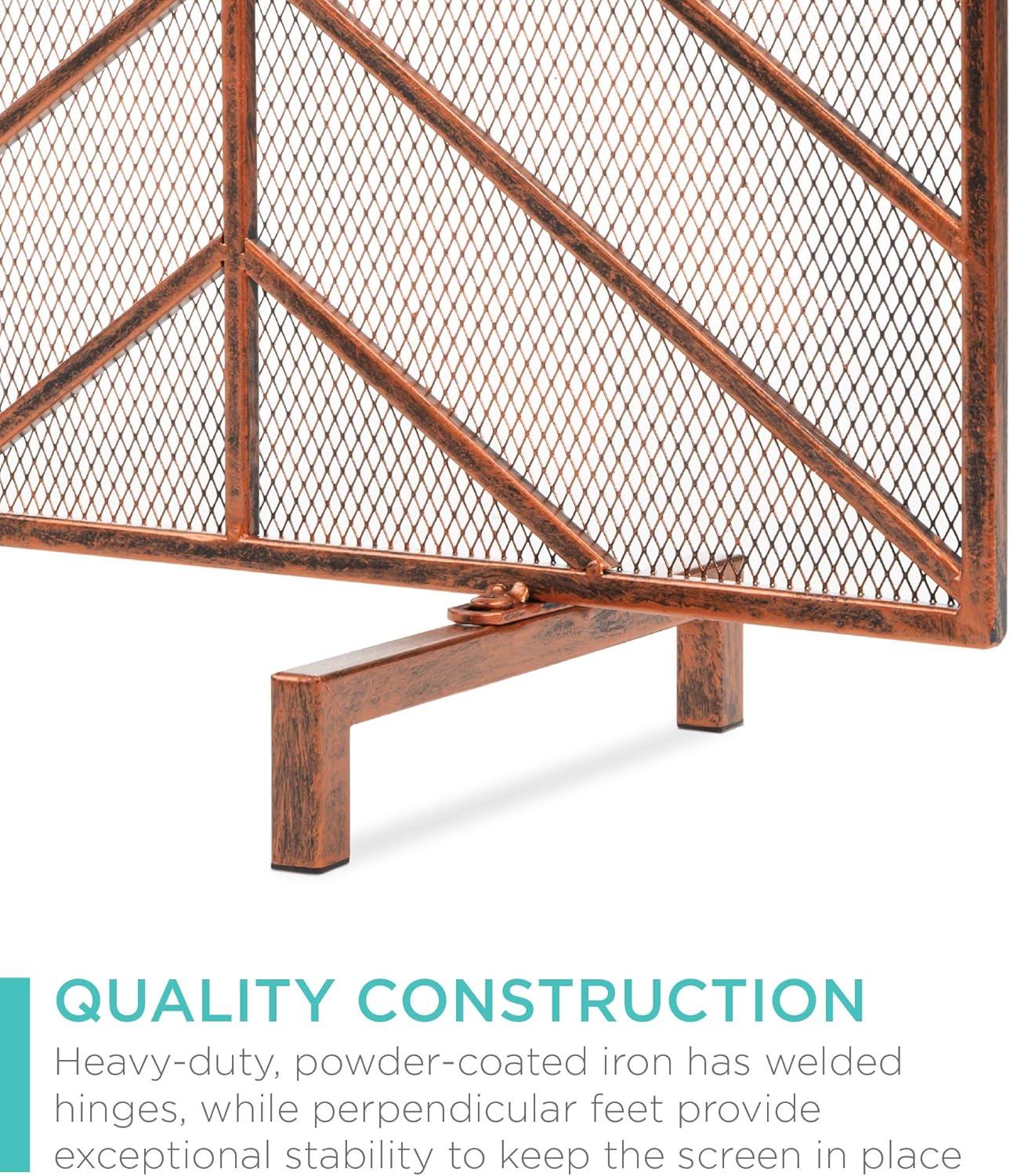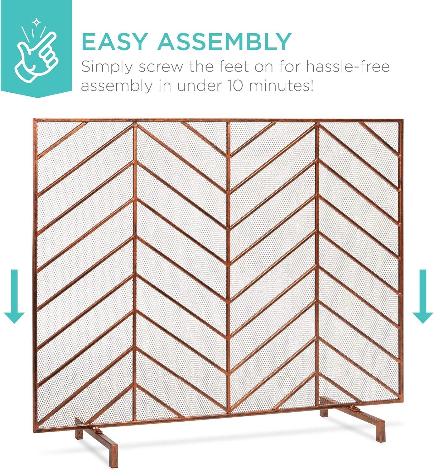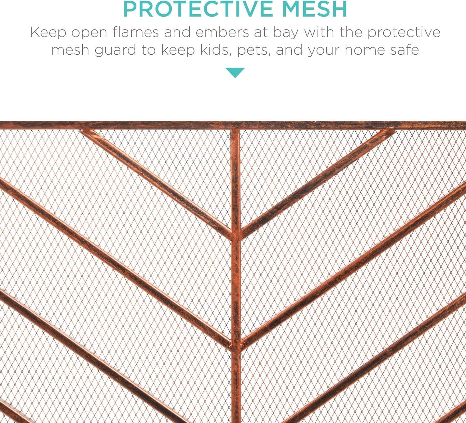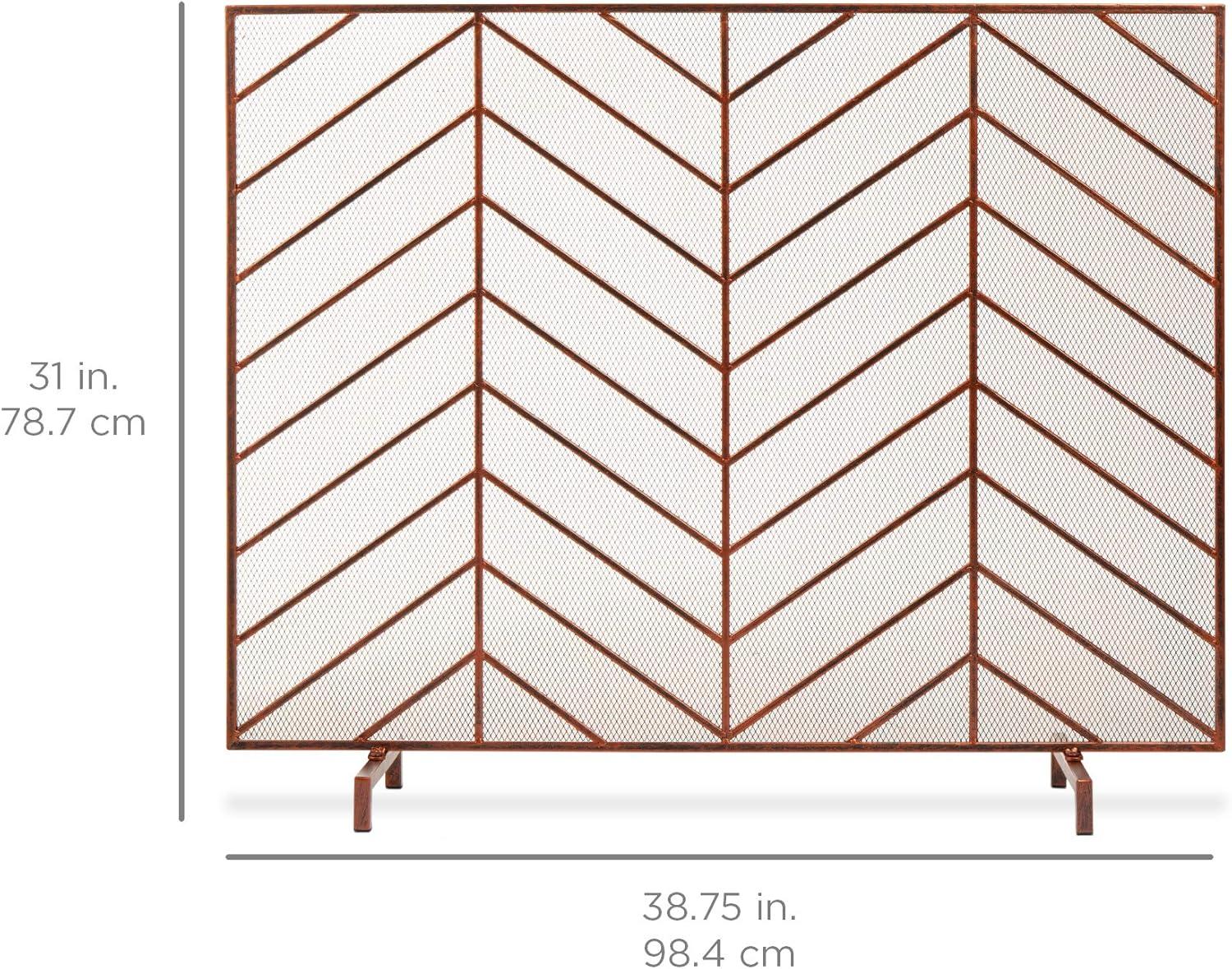 Best Choice Products 38x31in Single Panel Handcrafted Wrought Iron Mesh Chevron Fireplace Screen, Fire Spark Guard for Living Room, Bedroom Décor w/Distressed Antique Finish – Gold(Copper)