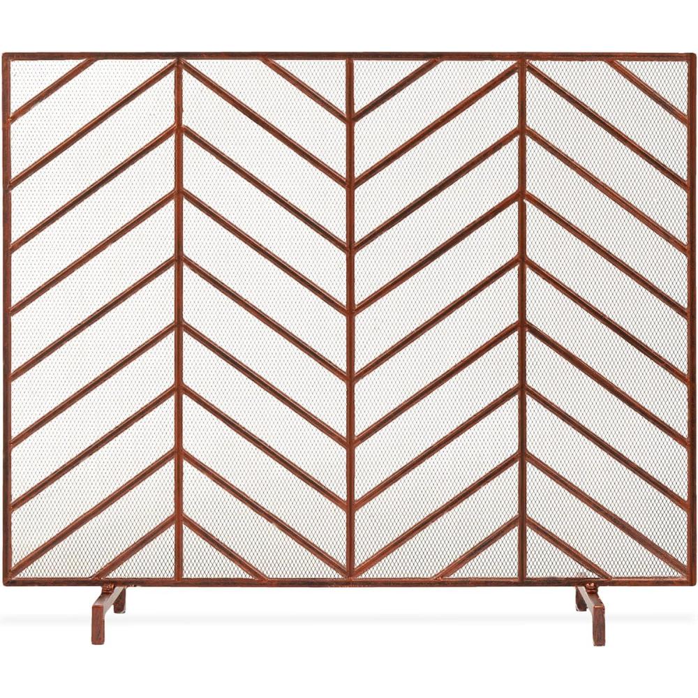 Best Choice Products 38x31in Single Panel Handcrafted Wrought Iron Mesh Chevron Fireplace Screen, Fire Spark Guard for Living Room, Bedroom Décor w/Distressed Antique Finish - Gold(Copper)