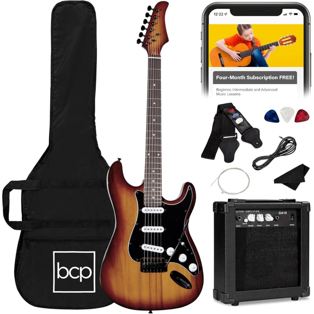 imageBest Choice Products 39in Full Size Beginner Electric Guitar Starter Kit wCase Strap 10W Amp Strings Pick Tremolo Bar  SoCal Green3 Color Sunburst