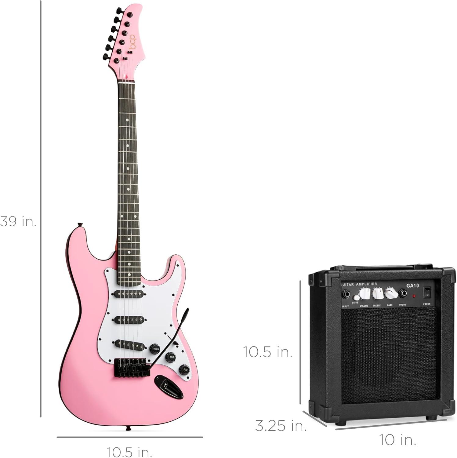 Best Choice Products 39in Full Size Beginner Electric Guitar Starter Kit w/Case, Strap, 10W Amp, Strings, Pick, Tremolo Bar – SoCal Green(Pink)