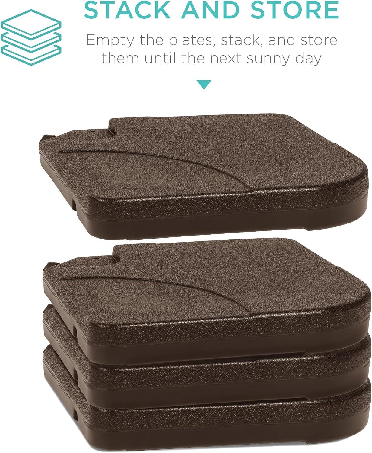 Best Choice Products 4-Piece 155lb Capacity Heavy-Duty Cantilever Offset Patio Umbrella Stand Square Base Plate Set w/Easy-Fill Spouts for Water or Sand – Black(Brown)
