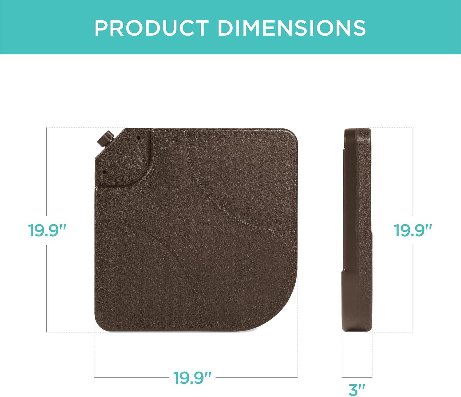 OFFSET UMBRELLA ESSENTIAL: Provides a solid anchor for compatible umbrellas and protects them from incidental damage caused by falls and harsh weather (Search: SKY5681 or SKY5248); OVERALL DIMENSIONS (per plate): 19.7″(L) x 19.7″(W) x 3″(H); Capacity (per plate): 13.2L of water, or 38.9 lbs. of sand