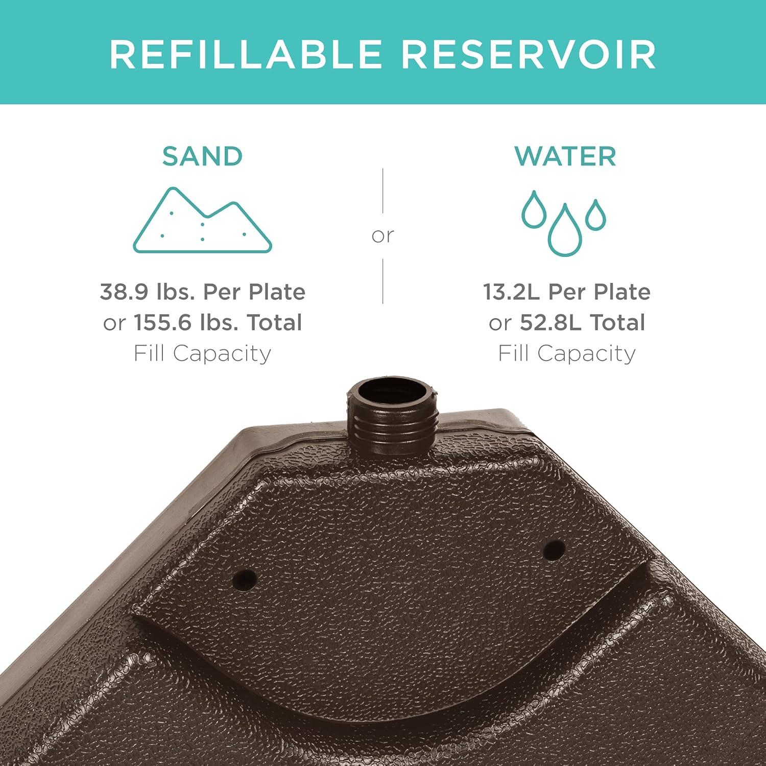 Best Choice Products 4-Piece 155lb Capacity Heavy-Duty Cantilever Offset Patio Umbrella Stand Square Base Plate Set w/Easy-Fill Spouts for Water or Sand - Black(Brown)