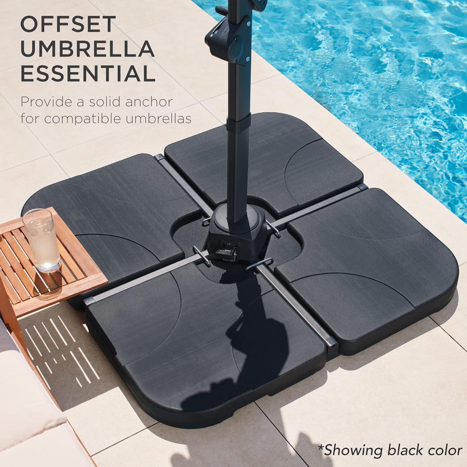 Best Choice Products 4-Piece 155lb Capacity Heavy-Duty Cantilever Offset Patio Umbrella Stand Square Base Plate Set w/Easy-Fill Spouts for Water or Sand – Black(Black)