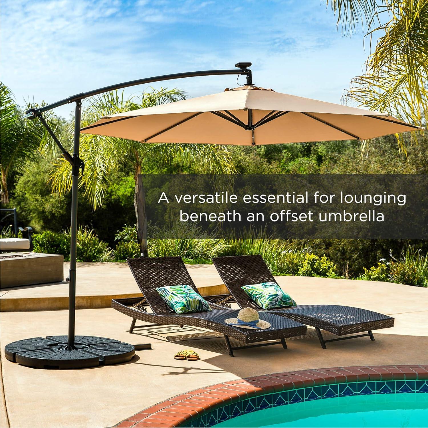 VERSATILE BASE: Compatible with offset umbrellas equipped with a cross base up to 11 inches long, or conventional market umbrellas with a cross base