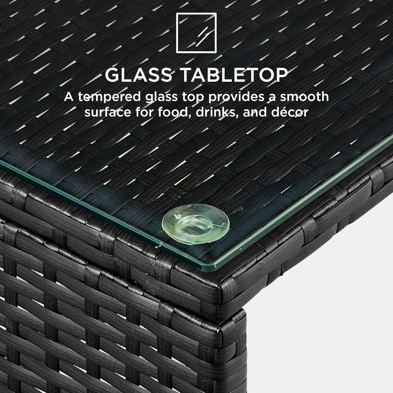 GLASS TABLE TOP: The wicker coffee table comes with a removable, tempered glass top to create a smooth, sturdy surface for food and drinks