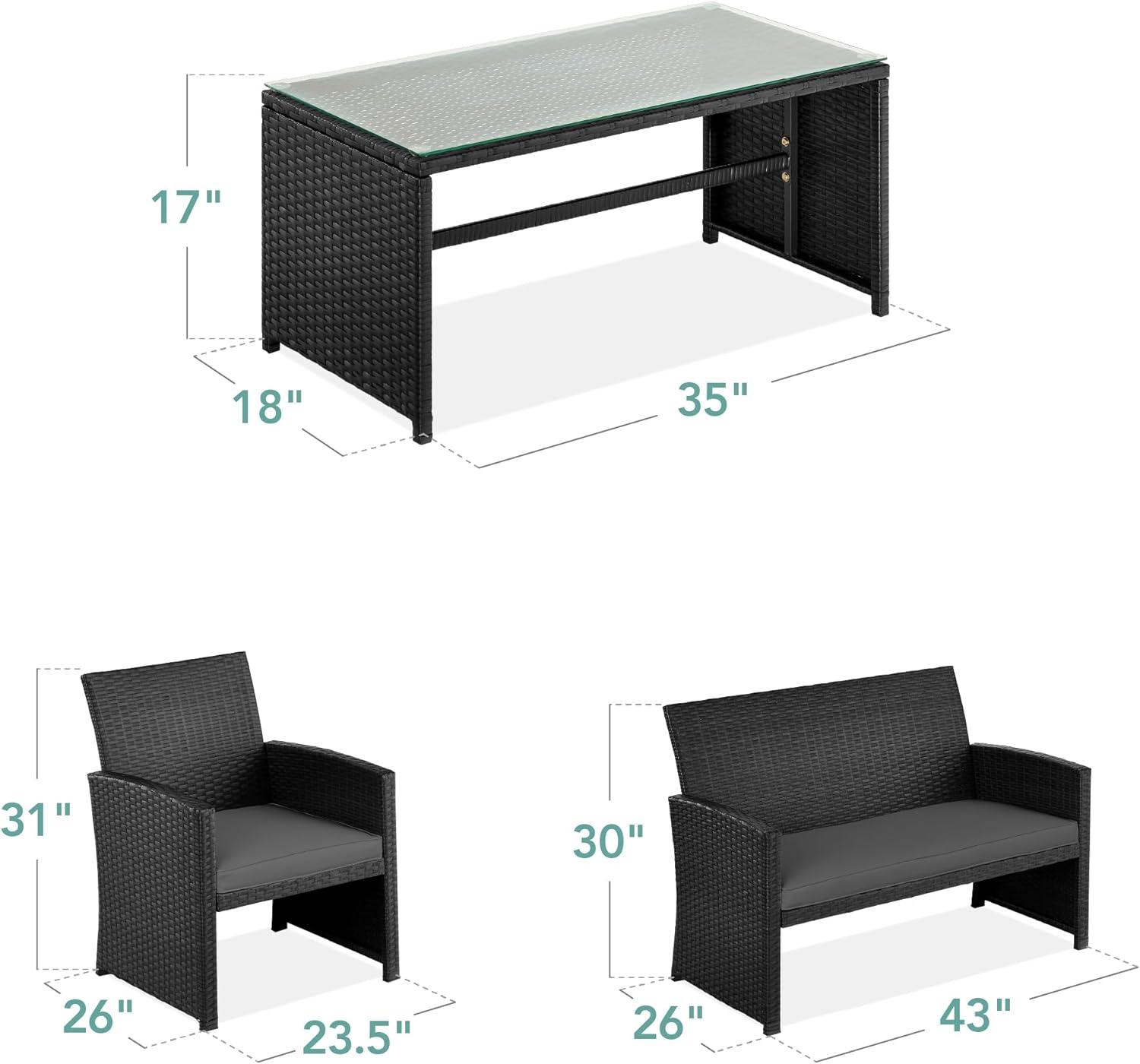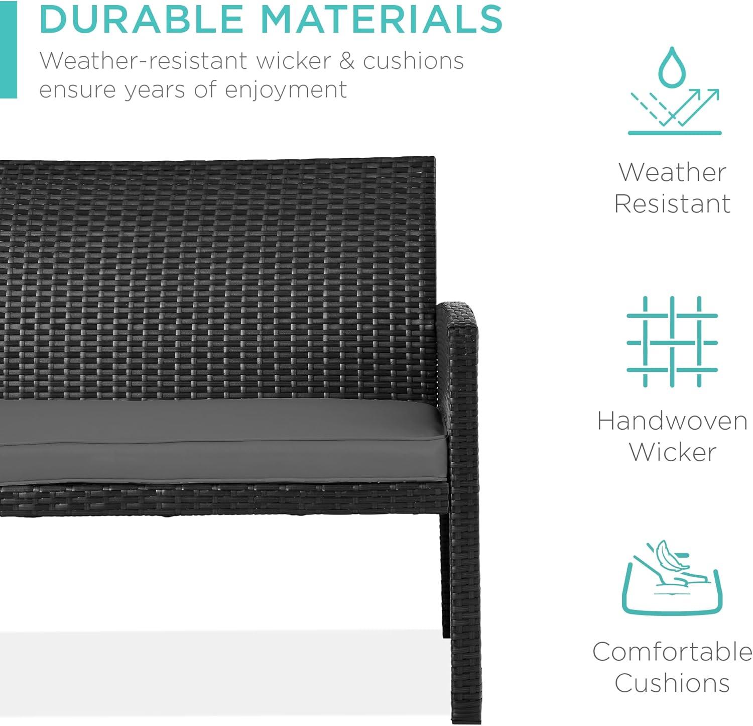 Best Choice Products 4-Piece Outdoor Wicker Patio Conversation Furniture Set for Backyard w/Coffee Table, Seat Cushions – Gray/Light Mint(Black/Gray)