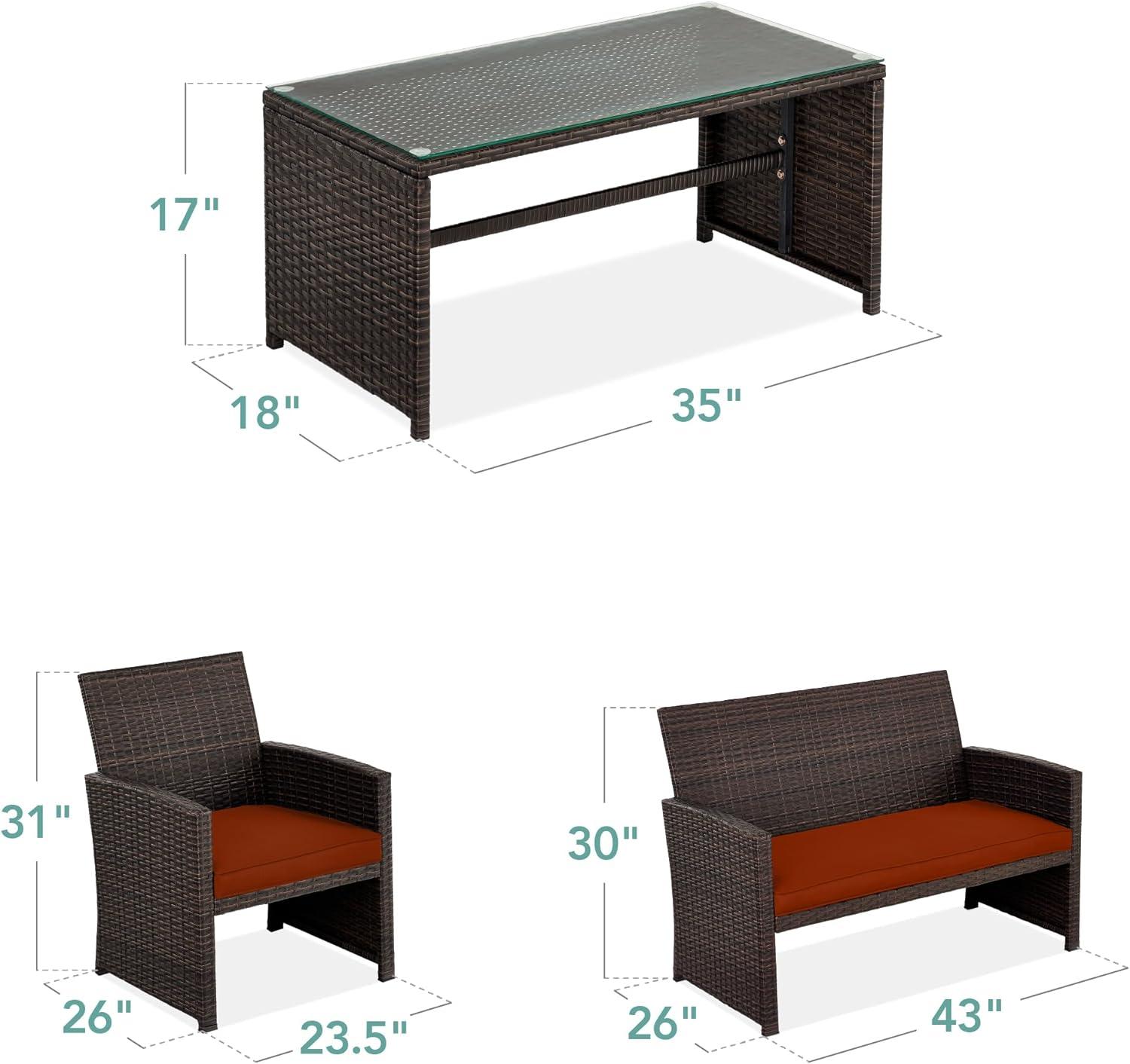 Best Choice Products 4-Piece Outdoor Wicker Patio Conversation Furniture Set for Backyard w/Coffee Table, Seat Cushions – Gray/Light Mint(Brown/Dark Rust)