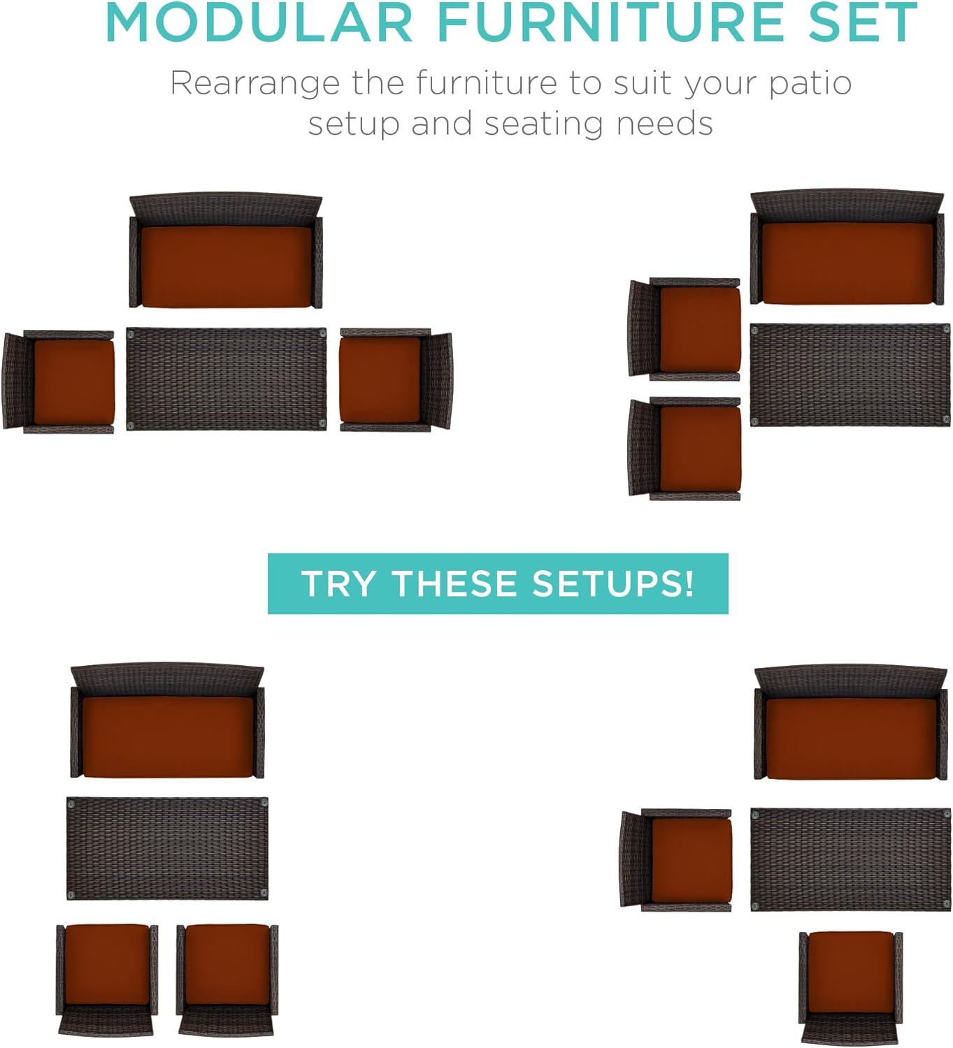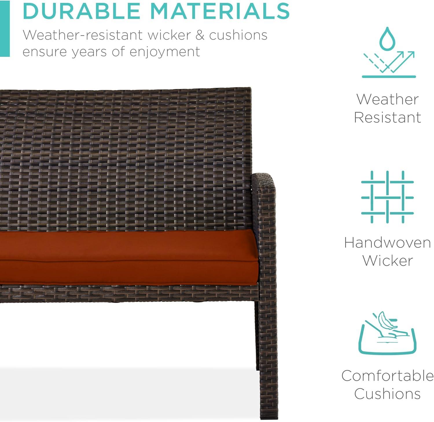 imageBest Choice Products 4Piece Outdoor Wicker Patio Conversation Furniture Set for Backyard wCoffee Table Seat Cushions  GrayLight MintBrownDark Rust