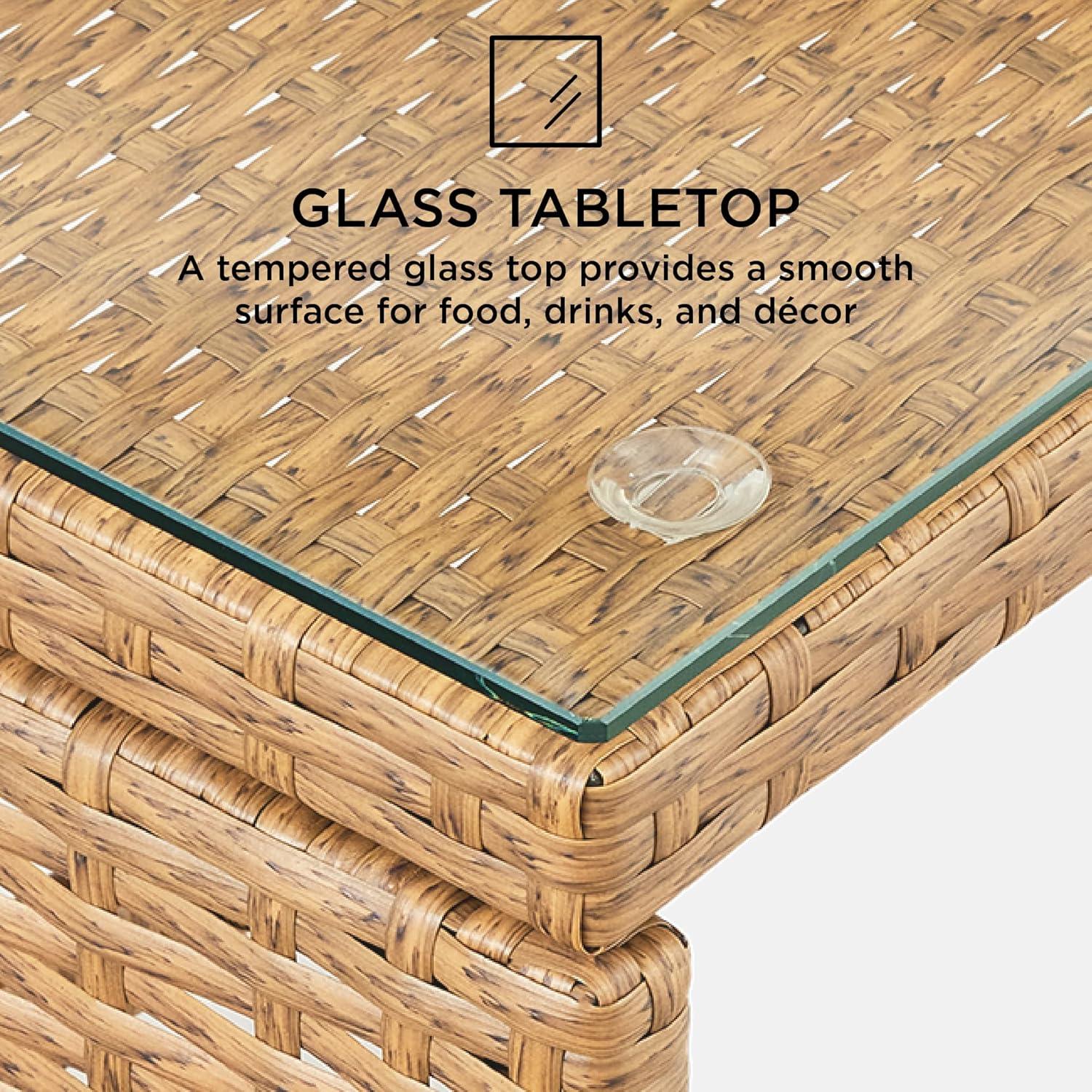 GLASS TABLE TOP: The wicker coffee table comes with a removable, tempered glass top to create a smooth, sturdy surface for food and drinks