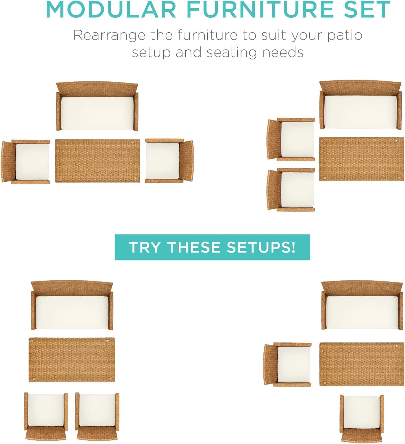 Best Choice Products 4-Piece Outdoor Wicker Patio Conversation Furniture Set for Backyard w/Coffee Table, Seat Cushions – Gray/Light Mint(Natural/Ivory)
