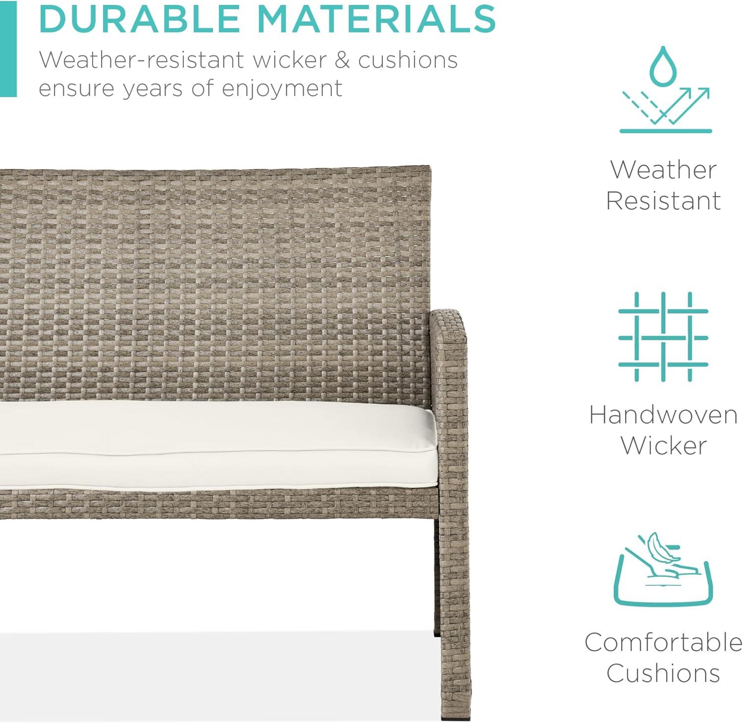 Best Choice Products 4-Piece Outdoor Wicker Patio Conversation Furniture Set for Backyard w/Coffee Table, Seat Cushions - Gray/Light Mint(Taupe/White Sand)