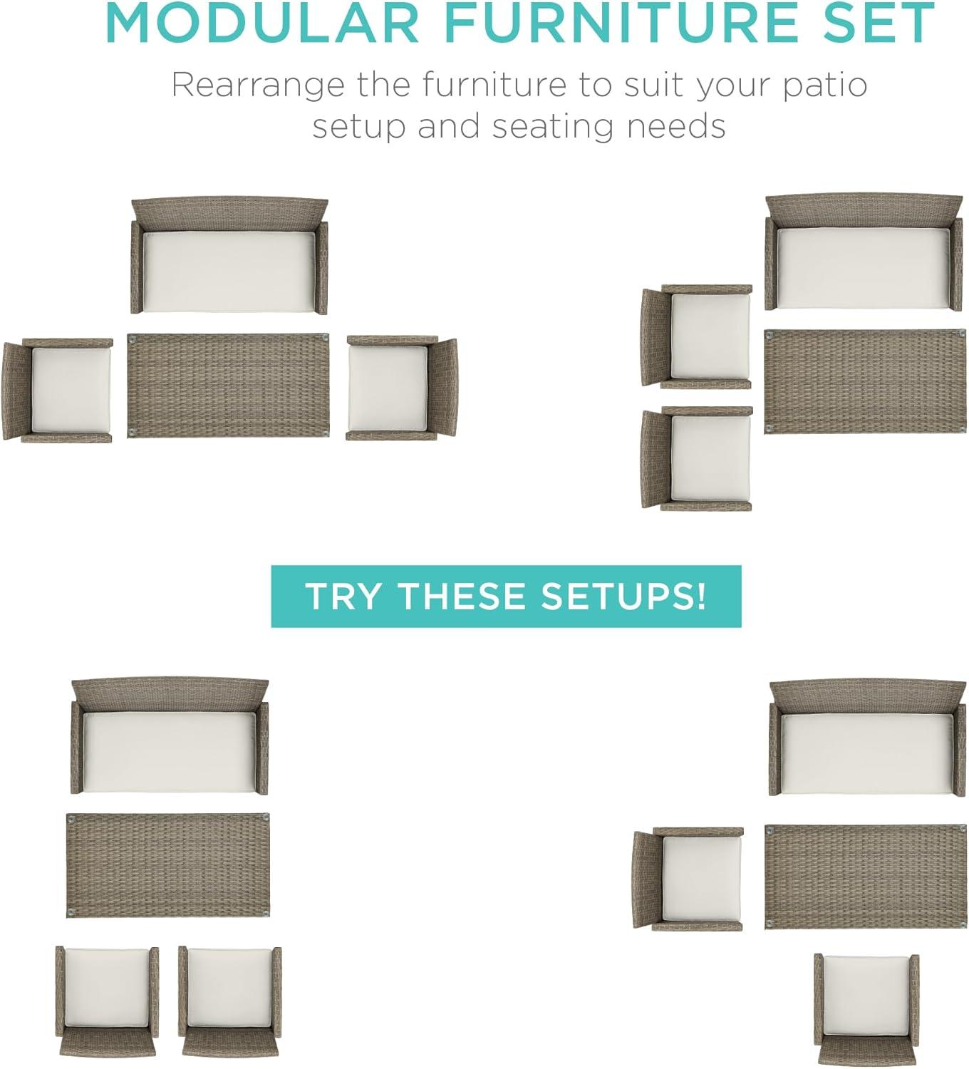 Best Choice Products 5-Piece Modular Conversation Set, Outdoor Sectional Wicker Furniture for Patio, Backyard, Garden w/ 3 Chairs, Ottoman Chair, 2 Pillows, 6 Seat Clips, Coffee Table – Gray/Navy
