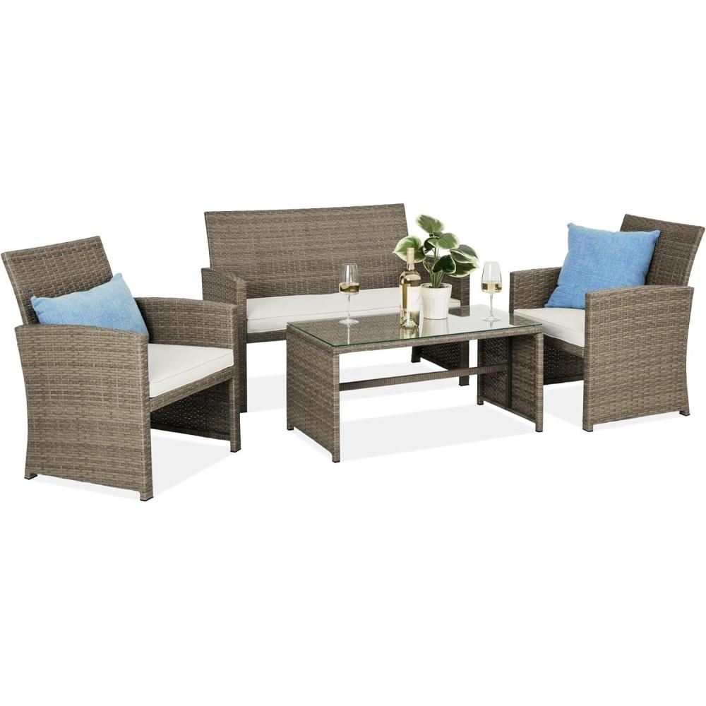 imageBest Choice Products 4Piece Outdoor Wicker Patio Conversation Furniture Set for Backyard wCoffee Table Seat Cushions  GrayLight MintTaupeWhite Sand