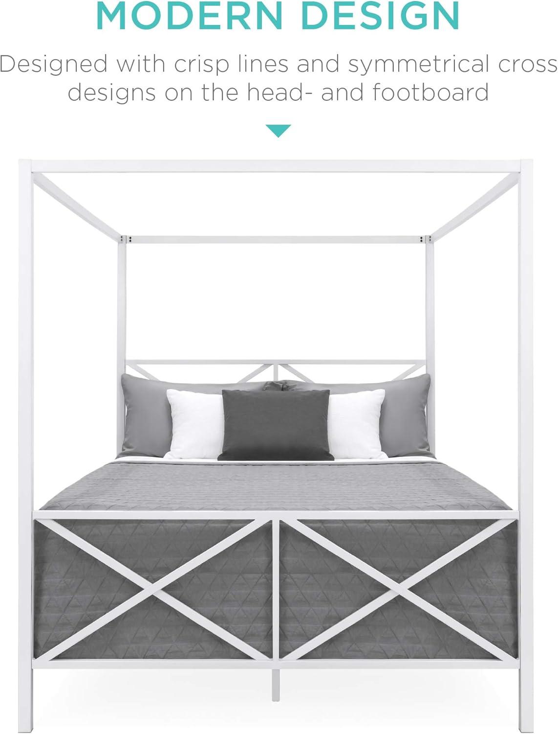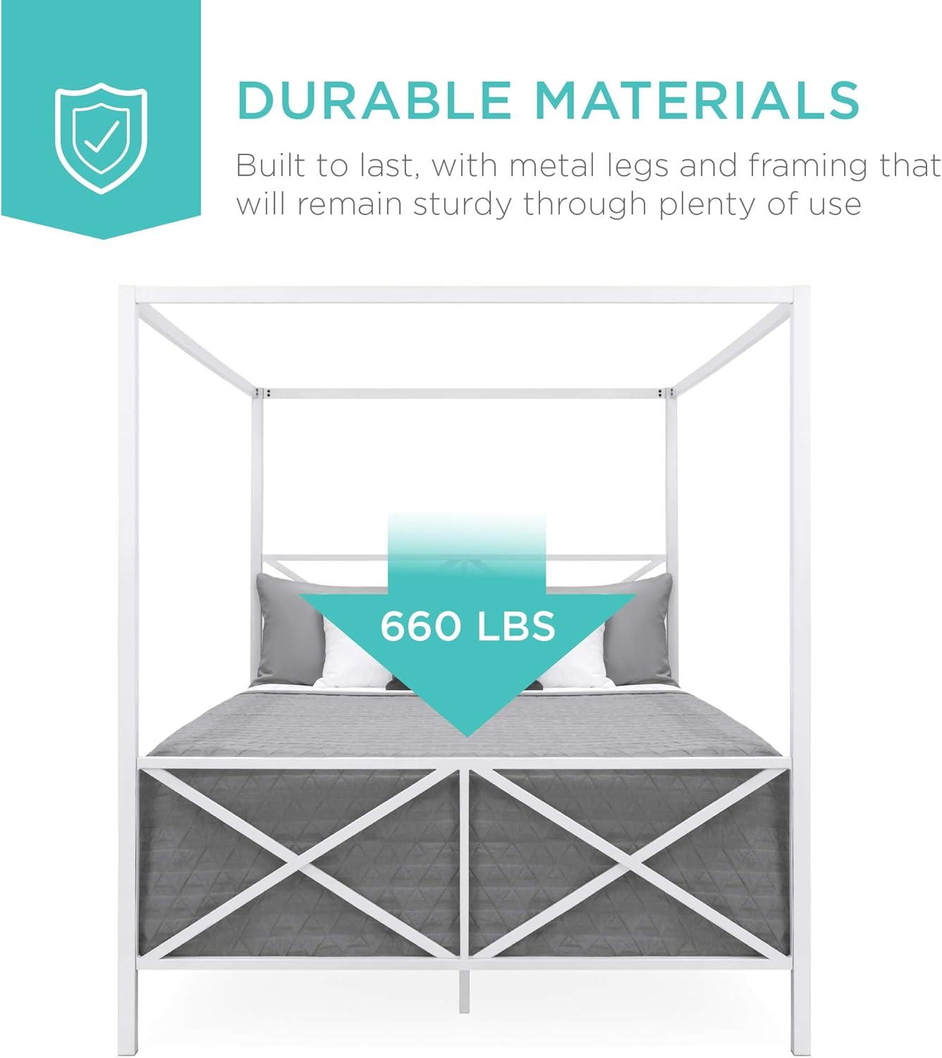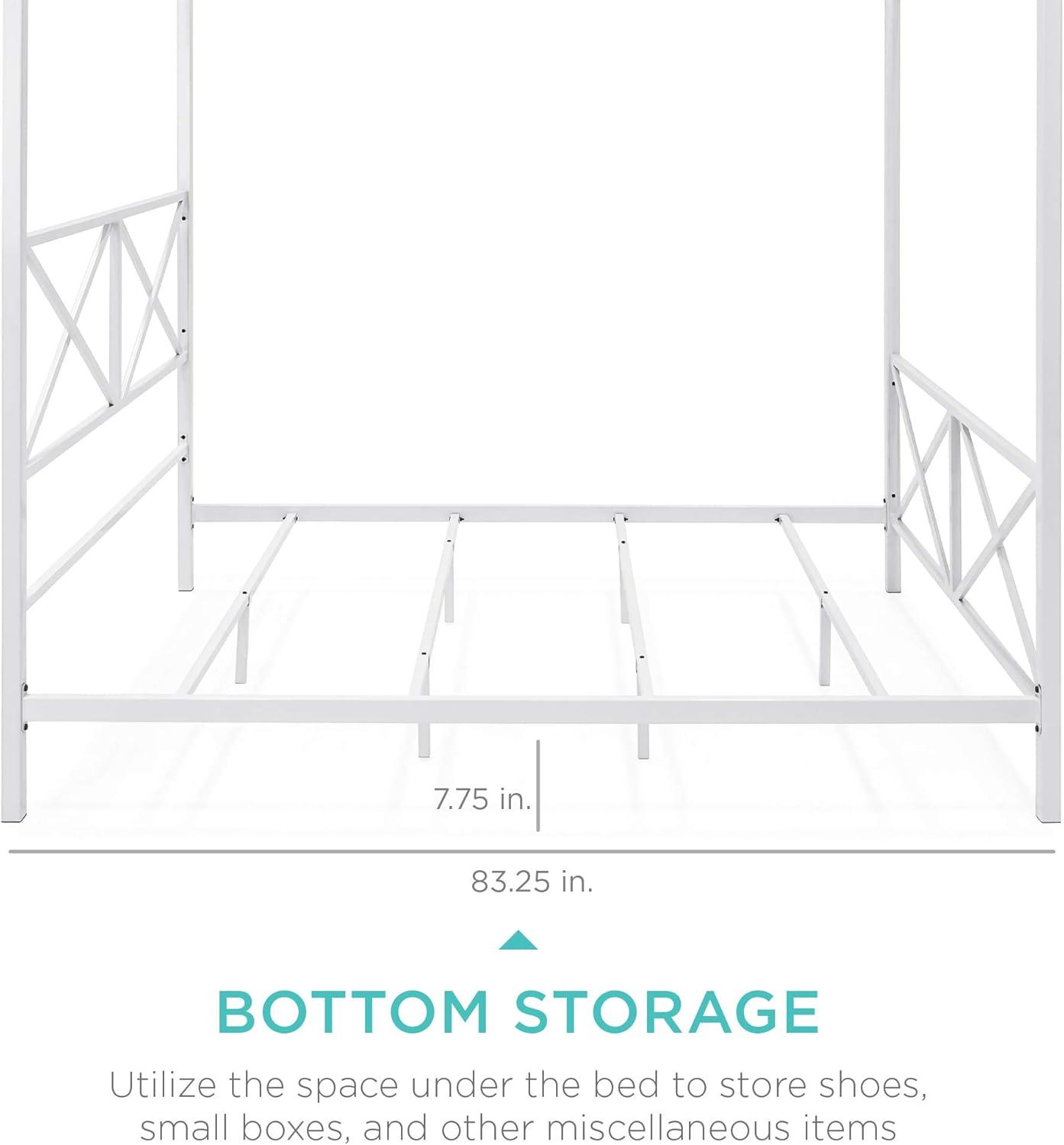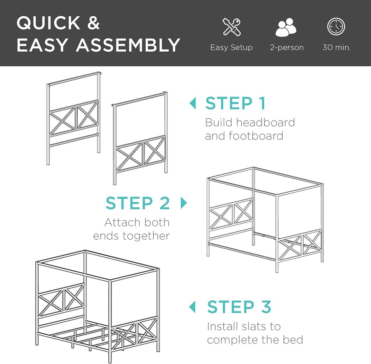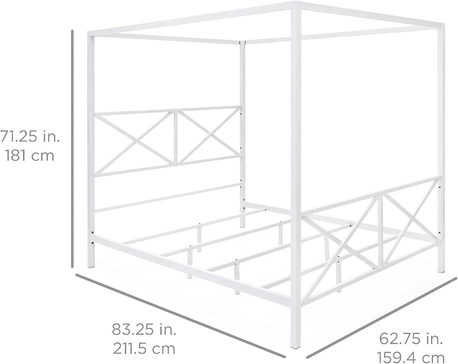 QUEEN-SIZED CUSTOMIZATION: Queen bed includes 4 sturdy metal slats, with rails bordering the top to allow for a sleek silhouette that can be easily customized with decorative curtains; OVERALL DIMENSIONS: 83.25″(L) x 62.75″(W) x 71.25″(H); Weight Capacity: 660 lbs.; Items contained in 2 separate boxes. Transportation times may vary per box.