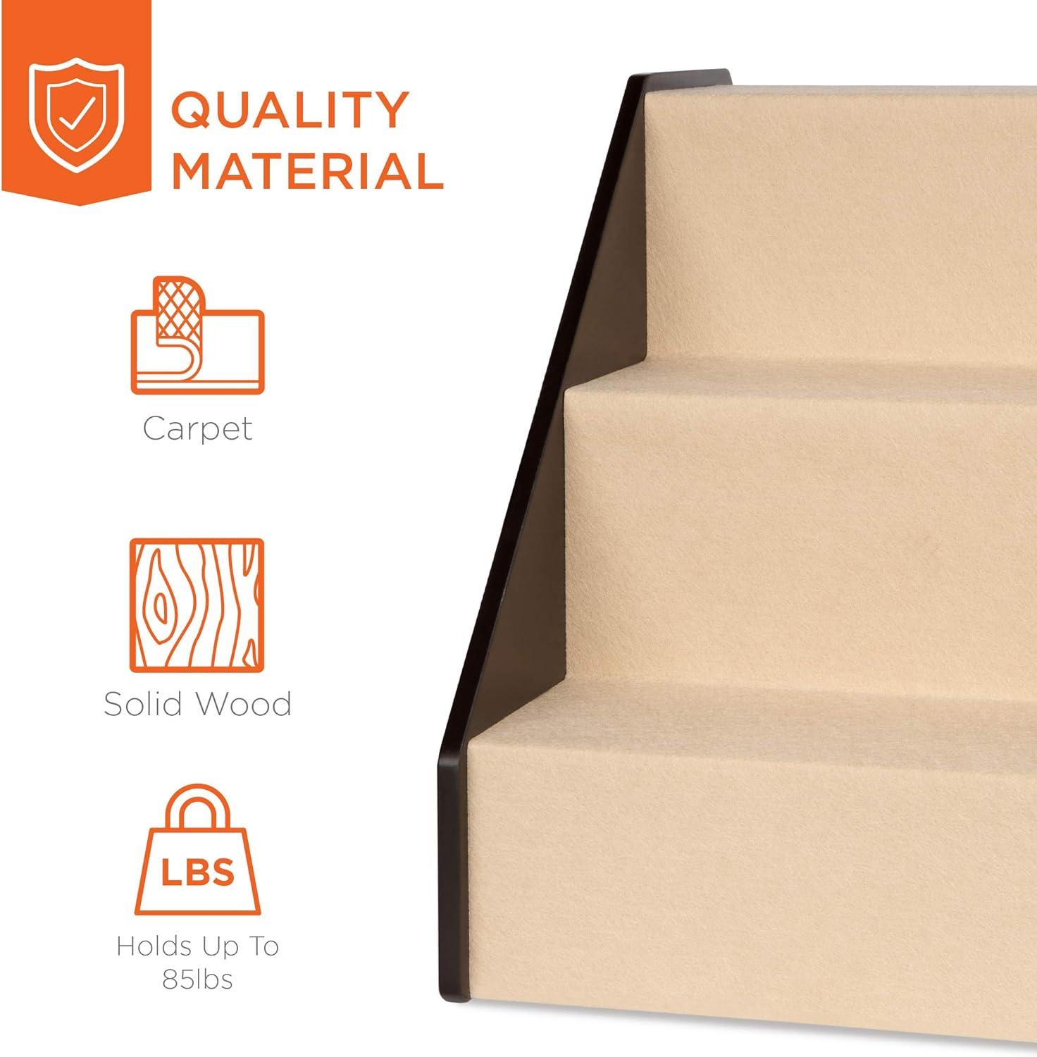 QUALITY DESIGN: Your lovable companion deserves the best, made of MDF and solid wood to support up to 85 lbs. and carpet steps to protect your pet from slipping as they climb up