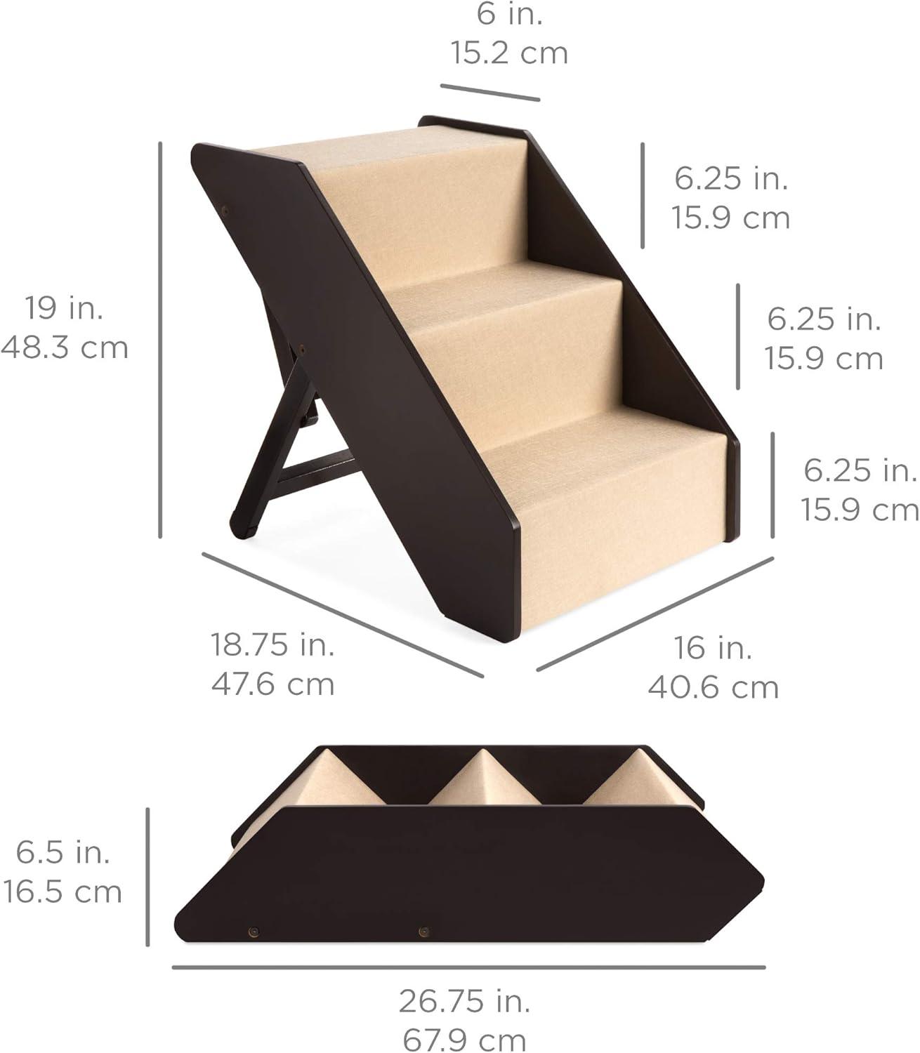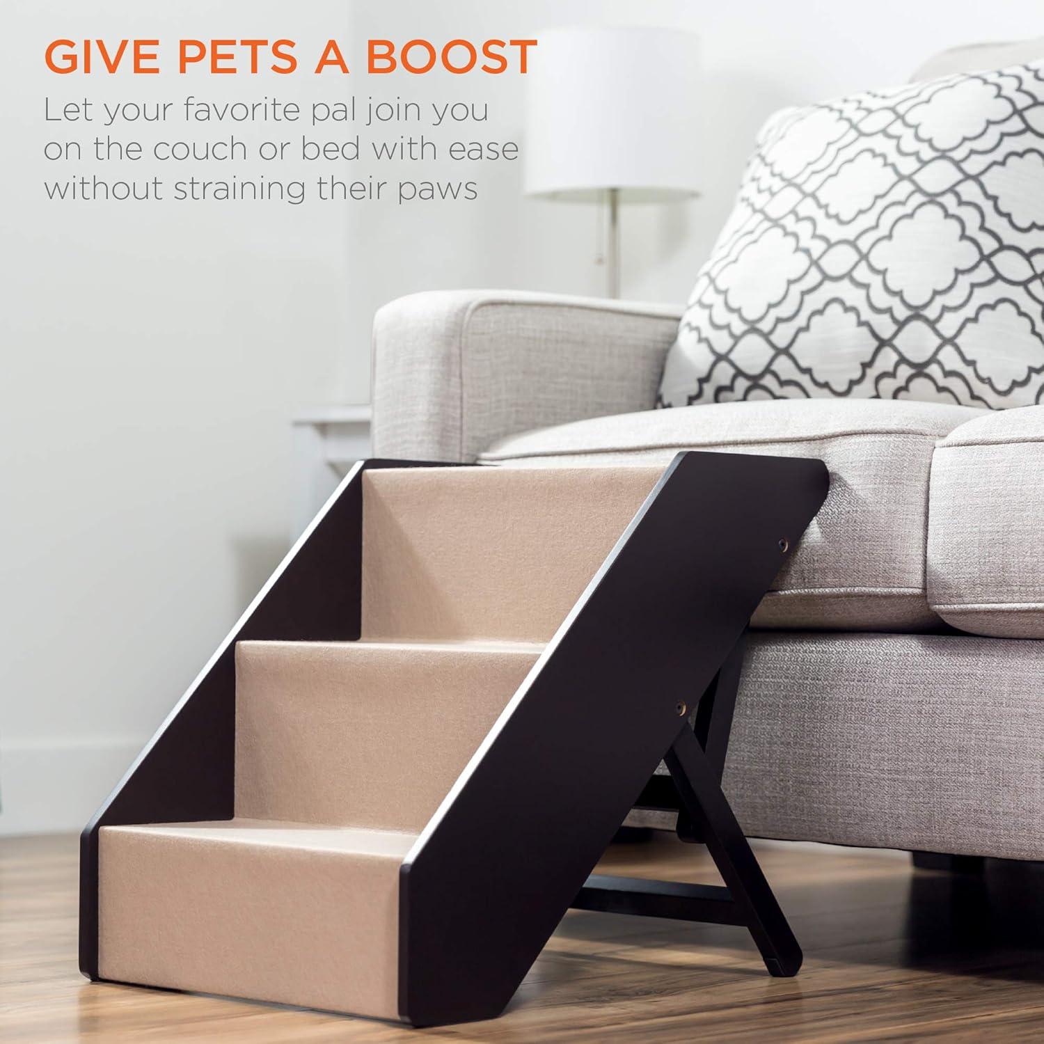 Best Choice Products 4-Step Foldable Adjustable, Non-Slip Wide Wooden Pet Stairs for Living Room, Bedroom, Dog & Cat Sizes Small, Medium, Large w/Carpet, No Assembly, Ideal for Injured, Elderly Pets(3-Step)