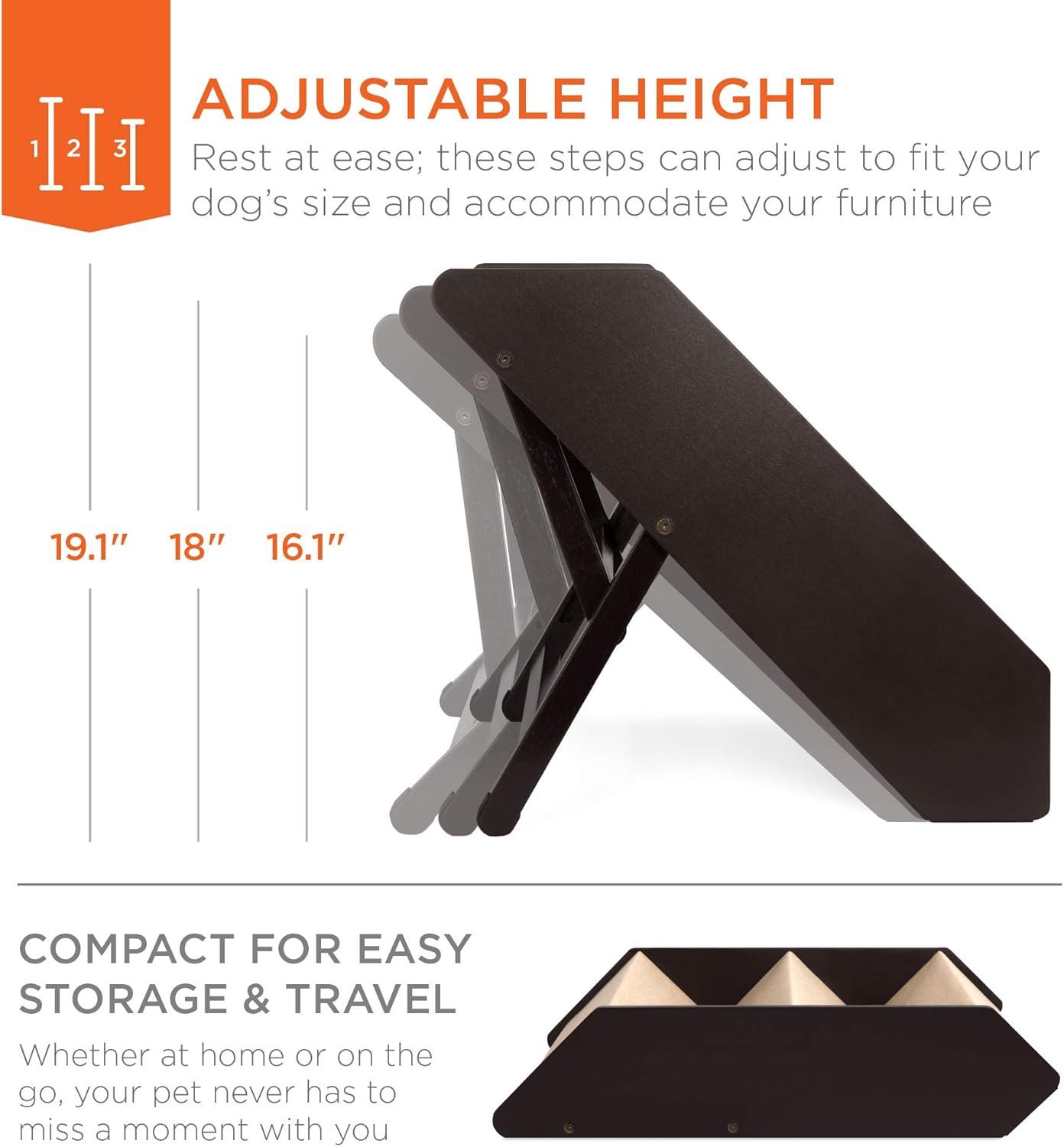 FOLDABLE STEPS: Built to fold in a compact size for traveling companions or for storage when you want to limit the amount of time your pet spends on the bed or couches